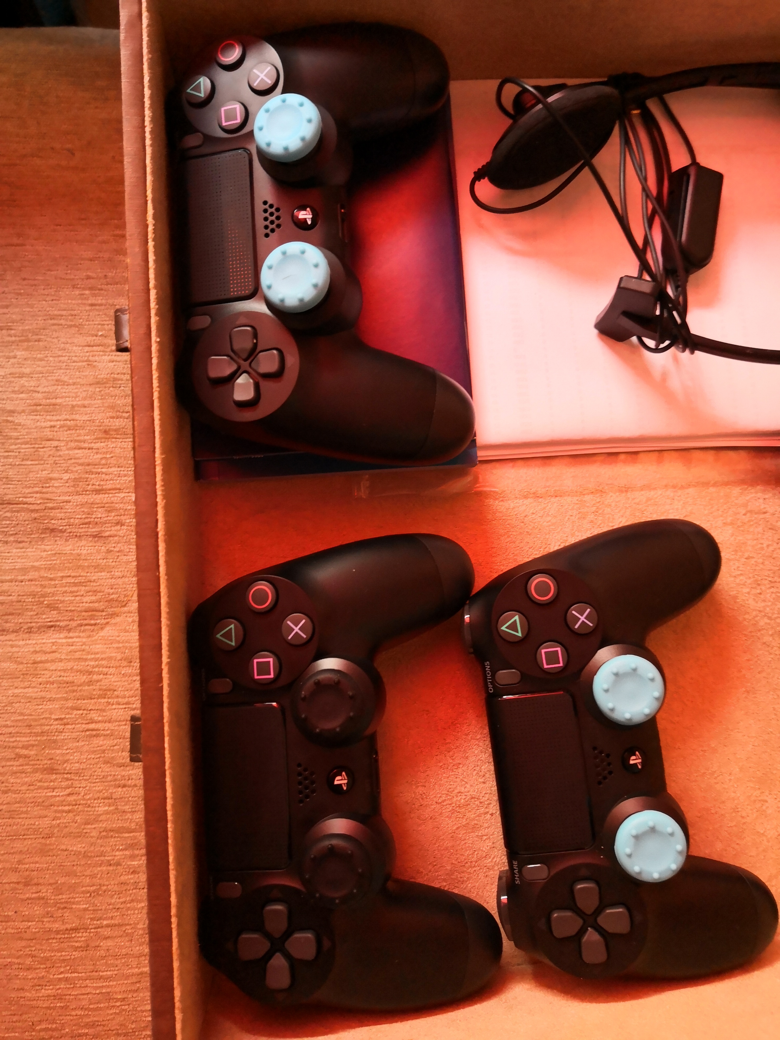 1 adet dikey stand orjınal sony 1 adet prizden harici şarj cihazı orjınal sony 2 li 3 adet ds4 kol + 1= 3 adet 1 adet gold kuaklık 7+1 son çıkan 6 adet kutulu arşivlik oyunlar
