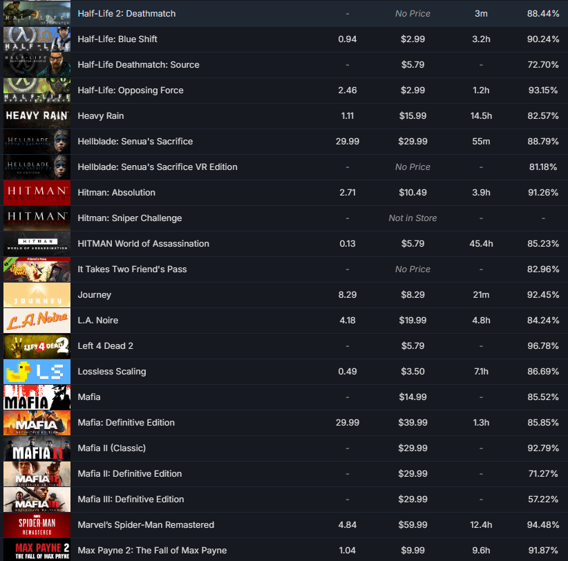 Toplamda oyunların değeri 1300$ civarı bir şey tutuyor. teklifler değerlendirilir.. İçinde EA Sports FC 24,The Last of Us Part I,Marvel's Spider-Man Remastered, Battlefield V,Days Gone,Mortal Kombat 11,Cyberpunk 2077 gibi oyunlar mevcuttur. Resimleri detaylı inceleyebilirsiniz. Ayrıca Çoğu oyunu daha kurmadım bile... 7 yıla yakın bir hesaptır.
