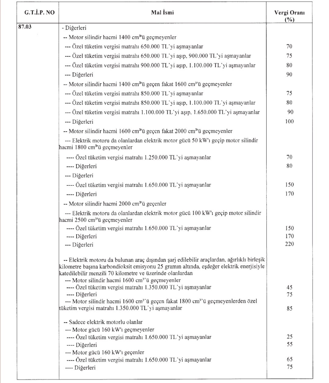 24.7.2025 TARİHİ ITİBARİYLE ÖTV ORANLARI GUNCELLENMİŞTİR