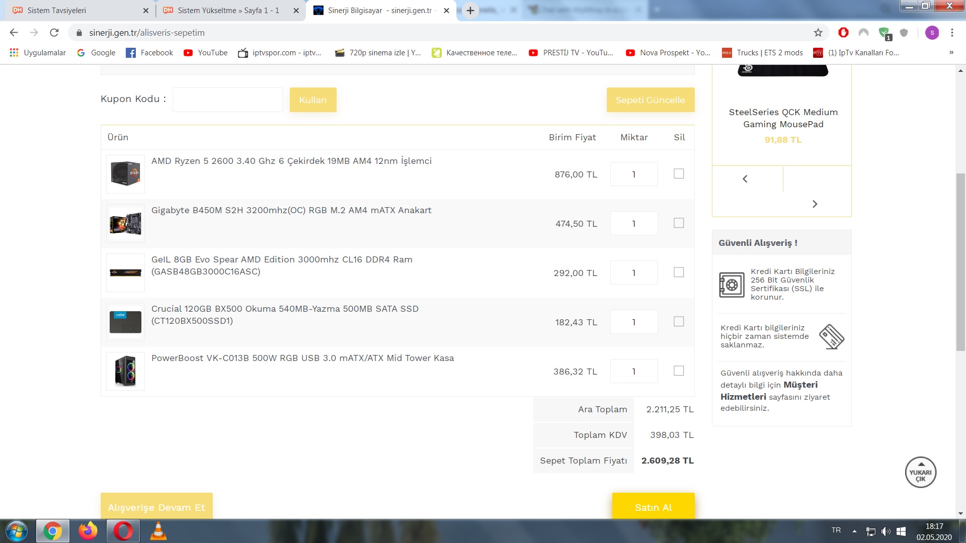 güzel önerileri var fakat benim merak ettiğim şu anki ekran kartım rx460 yeni sisteme uyum sağlarmı amd ryzen 5 2600 işlemci düşünüyorum ram 8 gb anakart,ssd ve güç kaynağı olan kasa ihtiyaç olarak gördüklerim şu an