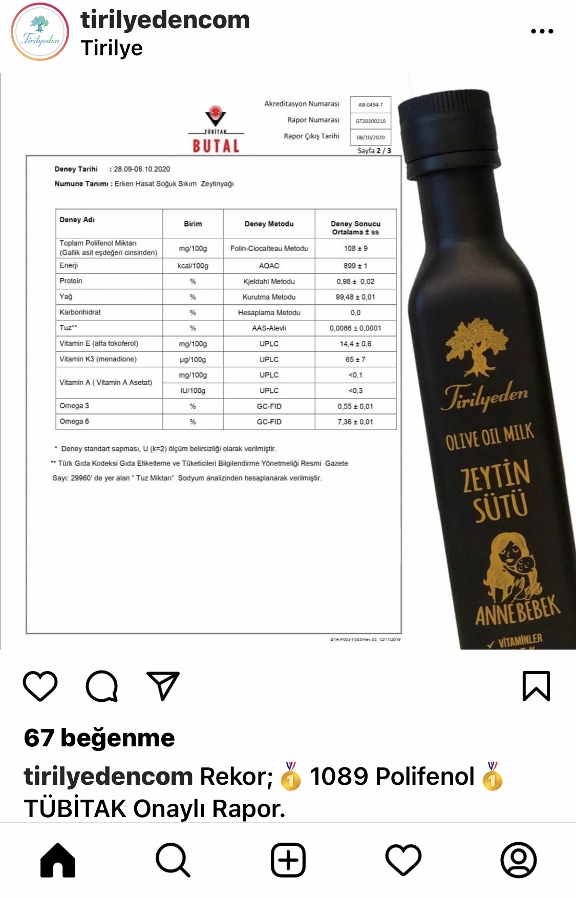 Yeni sezon Korudağ Harvena yağını denedim. Acılık ve yakıcılığı orta seviye veya ortanın biraz altında aroması ise hoş bir yağ. Şişeyi açtığımda etkileyici bir koku alamadım, daha dikkatli koklayınca güzel ve hafif bir kokusu var. f/p ürünü olarak tercih edilebilir bir yağ ama o açıdan geçen sezonun evliyazade yağını daha çok beğenmiştim açıkçası. Oleamea da yeni sezon filtresiz yağını satışa sunmuş. Geçen sezon sadece memecik satışa sunmuşlardı ve bu yağ en beğendiğim yağlardan biriydi. Yeni yağları ise yamalak cinsinden ve Nova veradan sonra bildiğim kadarıyla ilk defa butik bir üretici yamalak zeytininden üretim yapmış. Ürün açıklama kısmında belirttikleri değerler de oldukça etkileyici özellikle 1.67 peroksit değeri benim diğer üreticilerin analiz raporları ile karşılaştırdığımda gördüğüm en düşük peroksit değeri ancak fiyatı oldukça yüksek maalesef, kargo dahil 500ml 75tl. |