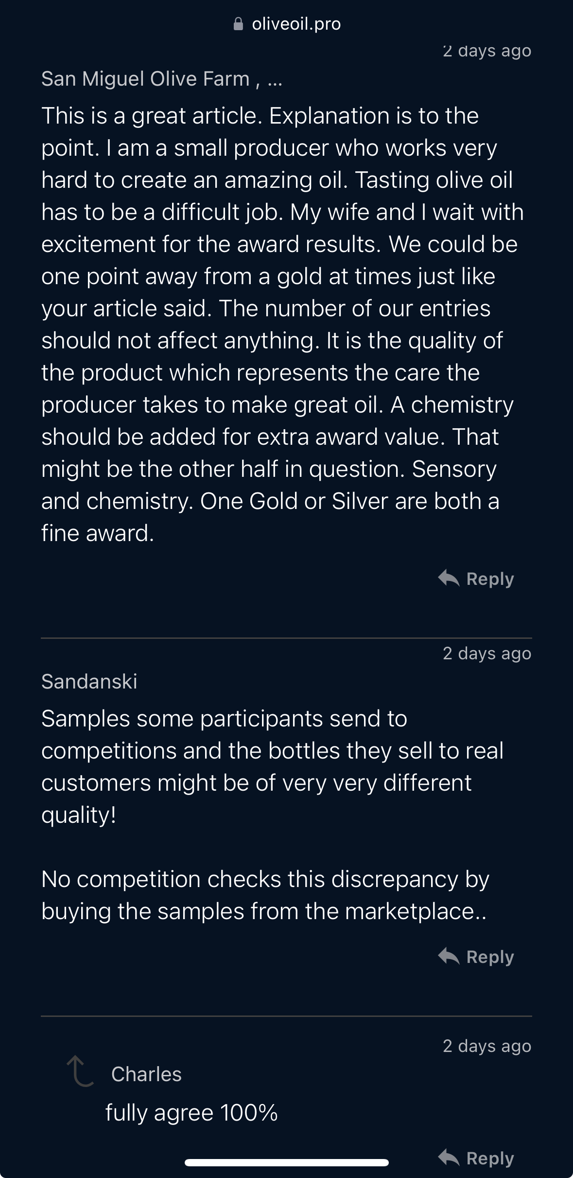 Bir Alman, bir Hollandalı, bir de Amerikalı bir gün… Ah Curtis, sen de mi Brütüs? Hadi Elvan Uysal Bottoni’nin umurunda bile olmayan evoowr.org tam bir garabet zaten, Almanınki bence bir tık daha iyi, nitekim Antonio Lauro ile Birsen Can’in hiçbir yarışmasını güvenilir bulmuyor! Yalnız Curtis, senin listen bu ikisinden de kötü bence.. Sadece NYIOOC’ye gönderilen numunelerin kaideye alındığı lokal bir liste olmuş.. Alman zaten senin yarışmanı (NYIOOC) güvenilir bir yarışma olarak kabul etmiyor! Garabet evoowr’den de yarışmanı sen kendin çektin, hatta sırf bu yüzden NVG geçen sene New York’a 15 şişe göndermekten son anda vazgeçti 😃😃😃 İşte, her yarışmaya (ayarlanmış yarışmalar) 15-20 vasat şişe gönderip ‘dünyanın en iyi üreticisi biziz!’ diyen saygısız, utanmaz ve sahtekarlar, aşağıdaki gibi emektar üreticilerin emeklerini, umutlarını, hayallerini çalıyor! < Resime gitmek için tıklayın > Makalede bir çok doğru noktaya değinilmiş, bravo! 👏👏 https://oliveoil.pro/ranking/ Adam Excel listesi istemiş ya arkadaş 😂😂 Alman’in listesi : < Resime gitmek için tıklayın > Monocultivar yok! Il Magnifico yok! Flos Olei yok! Lodo yok! BIOL yok! Bibenda yok! Argoliva nedir ki? Bu arada, ne olduğu belli olmayan Fairplex - Los Angeles açıklanmış! Yürü be Ninurta, kim tutar seni! Biz bunu sadece akşam yemeğinde tüketiyoruz, 175ml 😃😃😂 < Resime gitmek için tıklayın > 7’den 77´ye (avro)!!! Meraklılarına! < Resime gitmek için tıklayın > Not: Ninurta da made by BCP’ymiş iyi mi 😳 Umarim sonu Malia gibi olmaz! 😕 |