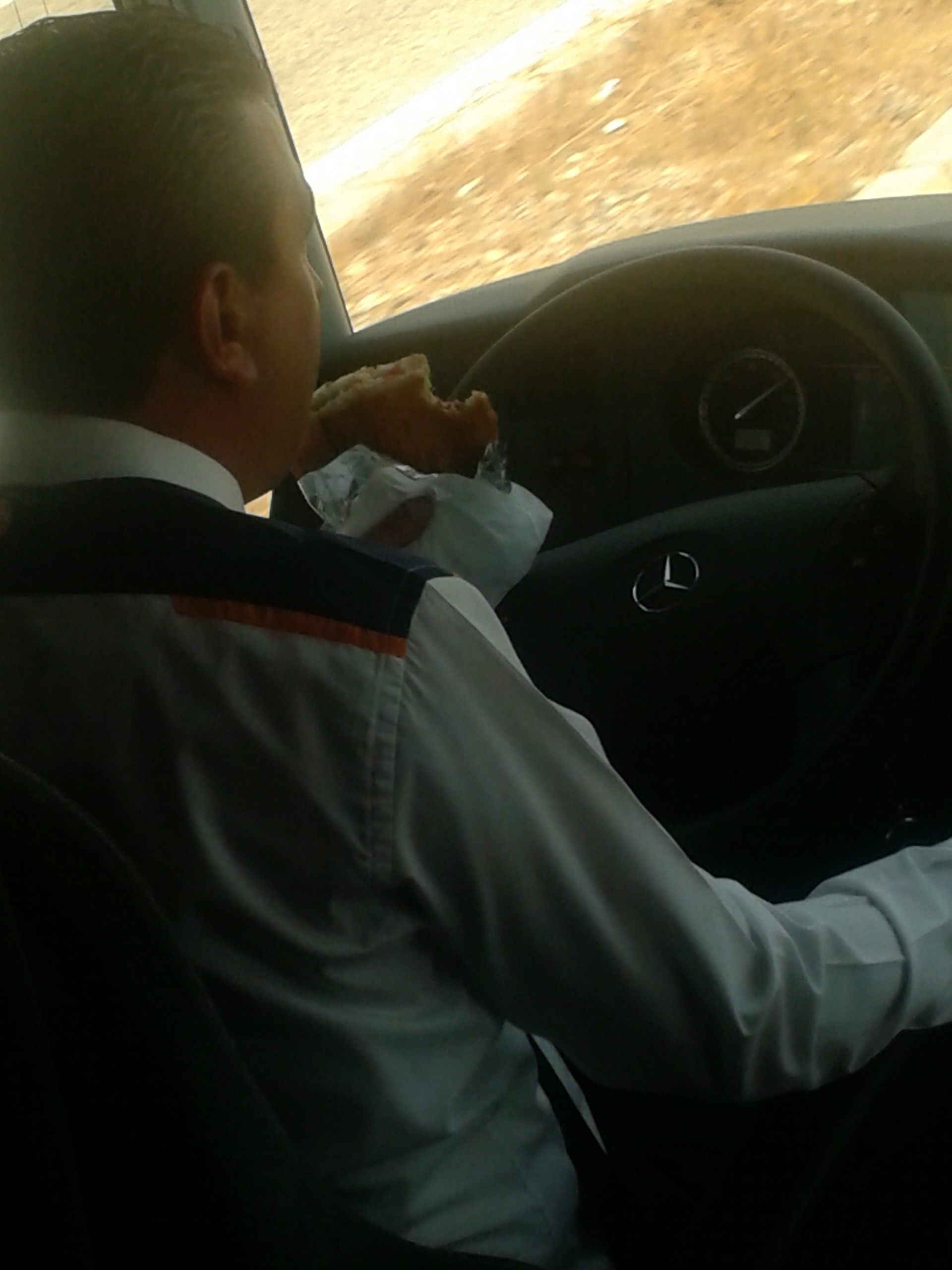 Uyarsanızya şu adamı direksiyon başında yiyip içmek telefonla konuşmak falan yapılmaz.