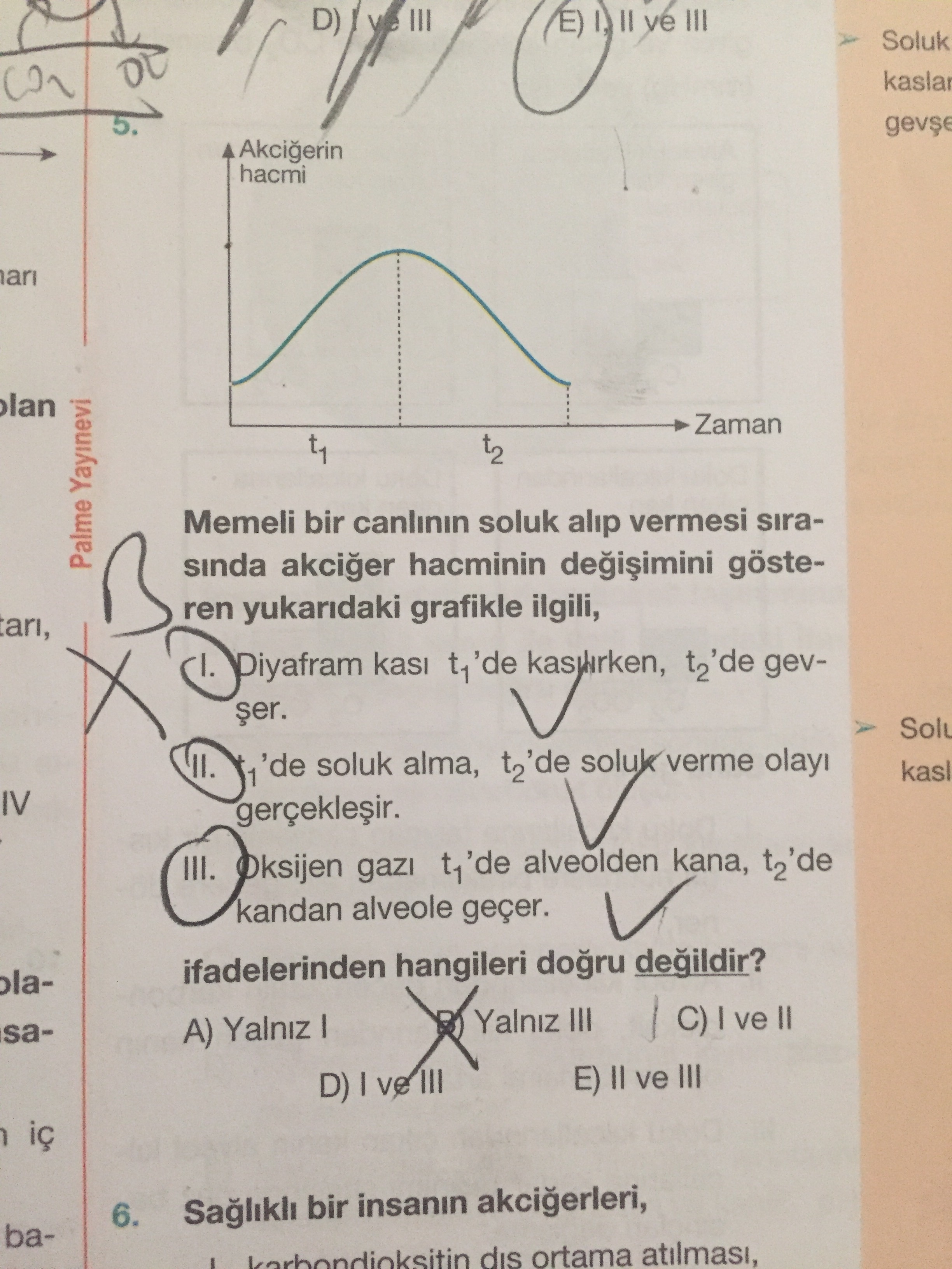 3. Onculde t2 sırasında oksijen gazınin kandan alveole geçtiğini söylüyor.Bu yüzden yanlış diye düşündüm. |