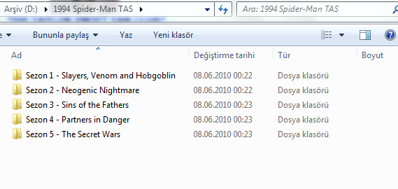Hocam Spider-Man için 3 4 tane tv serisi olmalı ama bir tek bu güzel sanırım diğerleri daha çocuksuydu, öyle hatırlıyorum. http://www.thetvdb.com/?string=spider-man&searchseriesid=&tab=listseries&function=Search burada tüm serileri var. |
