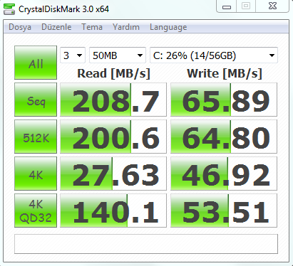 Ben testi yaparken crytal disk markın test parametrelerini uygun bir değerde tuttuğumdan gerçek sonuca ulaşmışım. bazı arkadaşlarmızın kötü sonuçlara imza atması Crystal disk markın NCQ QUE depth'inin yani kuyruk derinliğinin 1 olmasuymış.