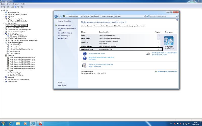 | ocz vertex 2 ilk kurdugumda windows7 den 7.8 aldı. tekrar yukledigimde 7.5 alıyor sorun nedir acaba? ust uste kurmakla kotu mu ettim? |