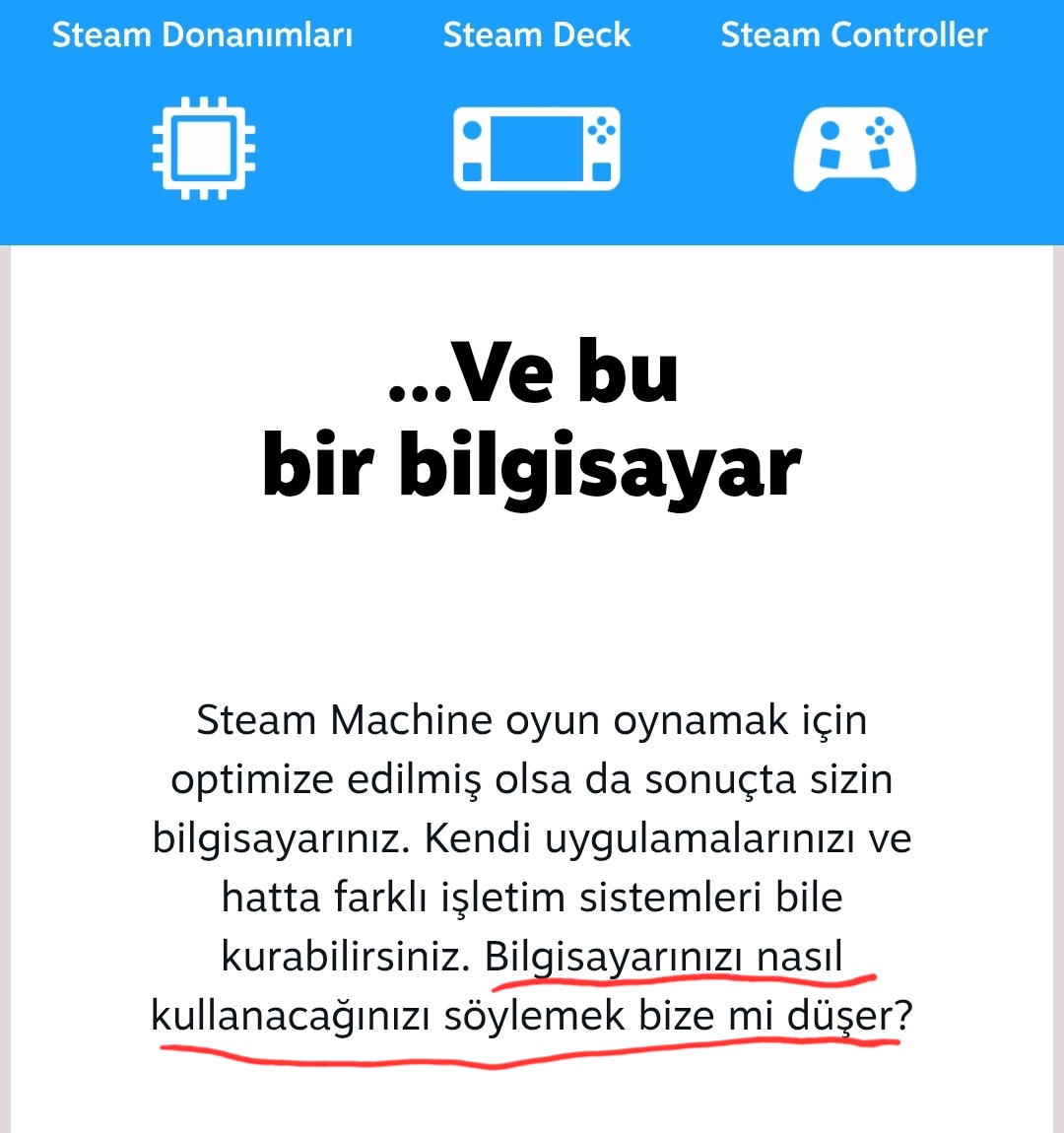 Bana hitap ediyo. Yas 32 pc masasinda oyun oynanmiyo artik ayaklarimi uzatarak oynamak istiyorum. Son 1 senede butun oyunlari steamdeck ile bitirdim hatta. Konsol denedim gercekten sarmadi Bu konsolda 1- her oyunu turkce oynamak 2- en ucuz magaza 3- en buyuk magaza Olmasi beni cezbediyo. Dunya genelinde ise yas ilerledikce konsola yonelme var. Valve ise madem konsola geciyosunuz buyrun konsol kaldiginiz yerden pc kutuphanenizle devam edin diyo daha ne yapsin. |
