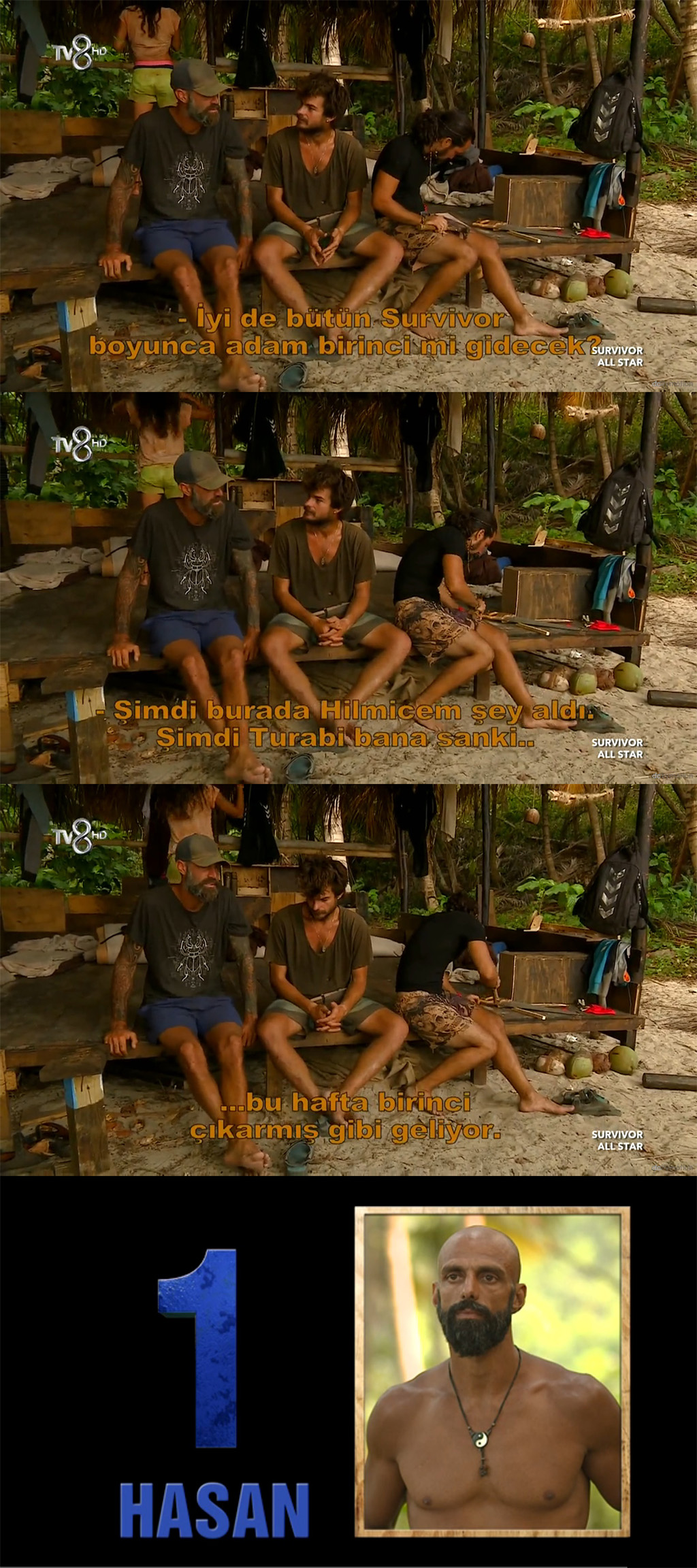 < Resime gitmek için tıklayın > Aslında buradan çıkarılacak 2 sonuç var: 1.Serenay bunu kameraların olmadığı bir yerde söyledi ki dedikoducu olarak gözükmeyeyim diye 2.Kameralar bunu çekti ama bazı yarışmacıların attığı adımından aldığı nefesine kadar her şeyi gösteren montaj ekibi Serenay'ın Turabi'ye söylediklerini göstermedi. Adama dedikoducu diyor bir gün sonra Hasan'ın kendi aralarında söylediği bir şeyi Turabi'ye ispiyonluyor.Vay anasını sayın seyirciler. |