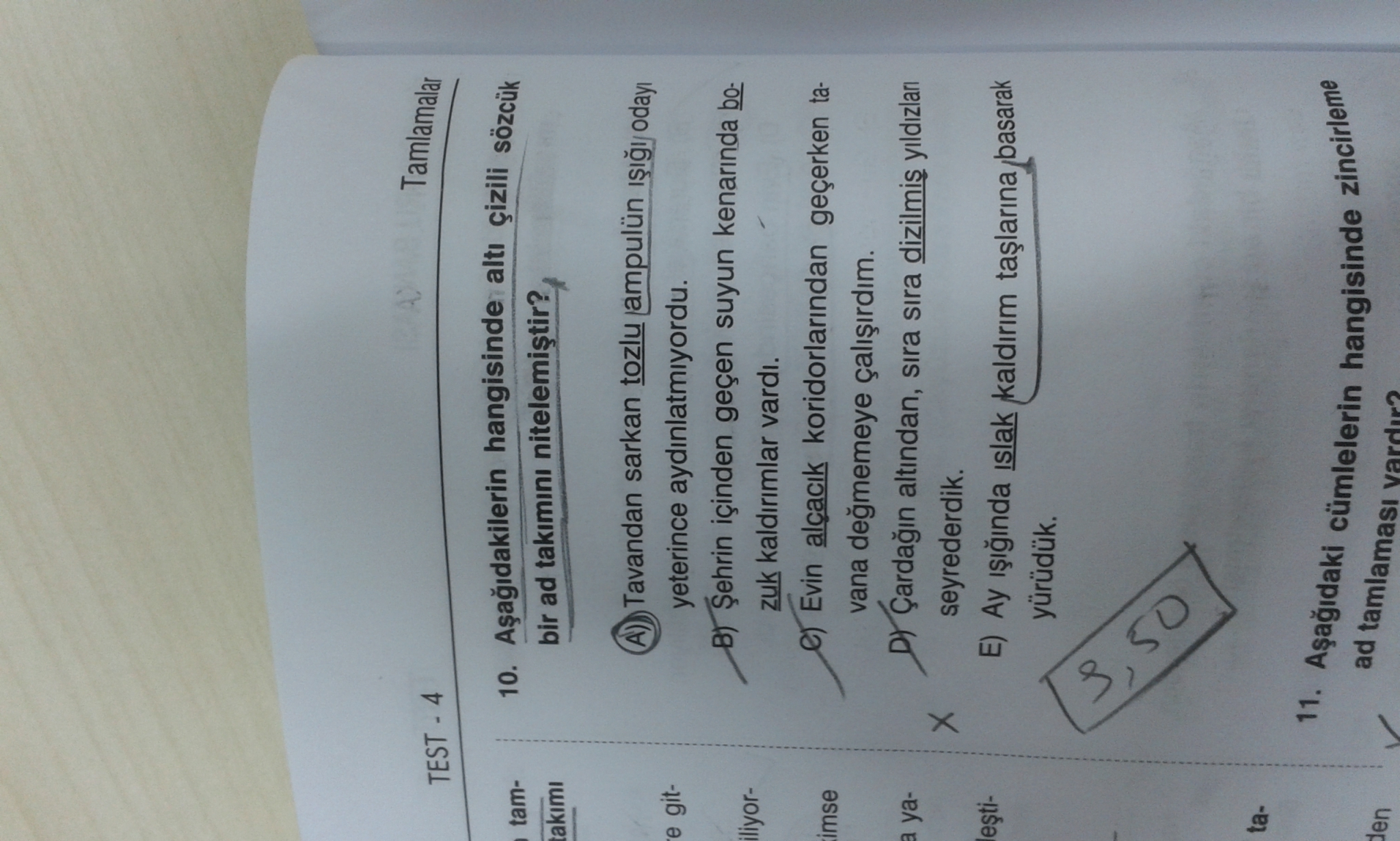 A şıkkında tozlu ampülün ışığı derken ampülün tozlu oldugunu söylüyor ışığı tozlu olmaz onu nitelememıs E şıkkında ıslak kaldırım taşları derken hepsini bir almış işte |