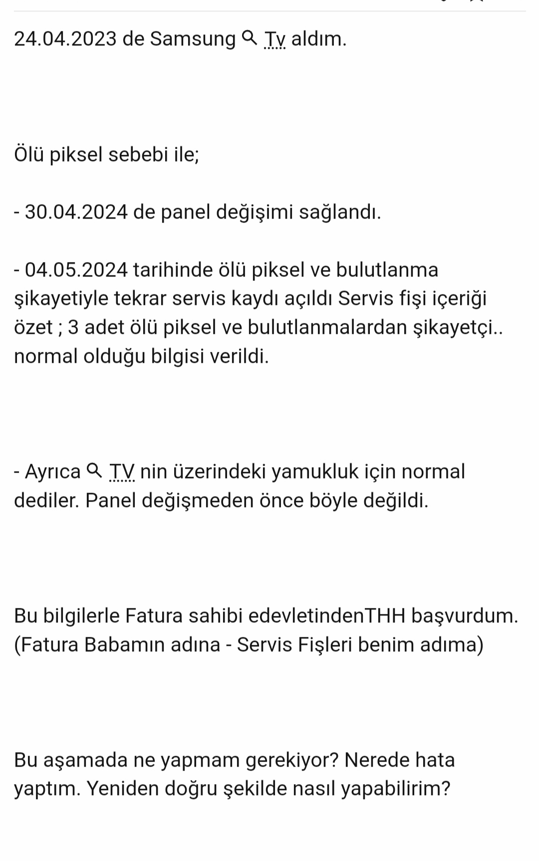 Panel müşterinin hatası olmadan kırılır veya başka bir panel sorunu olursa zaten panel MECBUREN değişmek zorunda Önemli olan(adı üstünde '' MÜŞTERİ TEMSİLCİSİ'NİN') müşterinin hatası ile yaşanan soruna çözüm bulmaSI Buradaki BİRİNCİ HATA 4 ay zarfında tüketiciyi görmezden gelmek. '' Vallahi beni arayan soran yok 3 kere müşteri hizmetlerine kayıt yaptırdım ilki 4 ay öncesinde olmak üzere. Bugün itibari ile arayan soran yok.'' İKİNCİSİ ise(daha vahim) bizim gibi HER VATANDAŞIN yapması gerektiği gibi GERÇEKLERİN arkasında ısrarla duranları karalamak VE KOMİK TARAFI bir şekilde Sorun yaşayan tüketicinin açtığı konu anca sayfalarca olunca dikkatlerini çekip te ,zorlarına gidince yazılar yazmaları( YA HADİ BAZI SORUNLAR HALLOLMUŞ,VE KANIT GÖSTERİYORSUNUZ ,BU GERÇEK ŞİKAYETİN KONUSU AÇILALI 1 HAFTA OLMUŞ NEREDEY DİNİZ?(YENİ GÖRDÜK DEYİP YALAN SÖYLEMEYİN) |