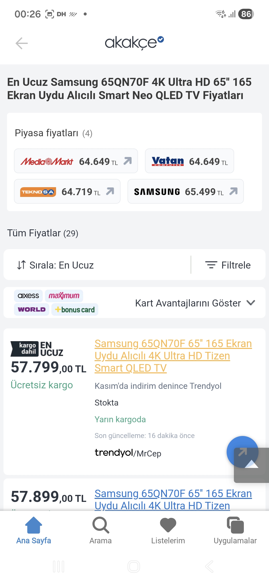 Tcl in Abd/Avrupa da mini led Tv alanında Hisense, Amazon Fire, Vizio gibi markaların ile fiyat rekabeti yaptığını, Tv lerininde fiyatlarını ona göre ayarladığın yazdim, okuyor ama ya anlayamıyor ya da baska bi sıkıntı var. Peki burada Tcl hangi firmalar ile rekabet ediyor? Samsung/Lg/philips...bunlarında ürettiği mini led Tv lerininde özellikleri,fiyatları çok ve Rtings.com dan aldıklarını puanlar ortada. Samsung 65qn70f suan Vatan,MM,Hepsiburada, Teknosa ve Samsung da 65.500 TL ye satılıyor diyorum, bunu görüyor, 58 e Tv yi satan abidük gubidik ne oldugu belli olmayan, şikayet varda onlarca sikayet yazılmış köşe basi tv ve birkaç beyaz eşya satan firmanın fiyatini baz aliyor, sen al hocam, sonra bi sıkıntı oldumu onlarca kişinin bi muhatap bulamadığı gibi ortada kalırsin. Kendisi bile öyle yerlerden bisey almayacakken millete alanabilir diye algi yapiyor. Burada manipülasyon yapan belli 🙂 Samsung kendisi bile o fiyata satmıyor. Ha birde Rtings.com dan bile 6 puan alamayacak Samsung 65qn70f yi Rtings.com dan 7.8 puan almış Tv ile kislamaya çalışıyor 🙂 Bu arada Rtings.com dan Samsung Qn80f kac puan almış, 7.2 puan almış Bir yil önceki Qn85d modeli de 7.5 puan almış bu yil ki Qn85f de 7.6-7.8 arasında puan alabiiir. Peki bu 65Qn85f kaca satiyor suan 81 K , yani Rtings.com dan hemen hemen ayni puan almış (7.8) Tcl 65c7k kaca satılıyor 76 k ya ( ne idüğü belirsiz köşe başı firmalarda 69 a satılıyor) Şimdi kim pahaliya satıyormuş? Bi de iktisat mezunu 🙂 < Resime gitmek için tıklayın > < Resime gitmek için tıklayın > < Resime gitmek için tıklayın > |