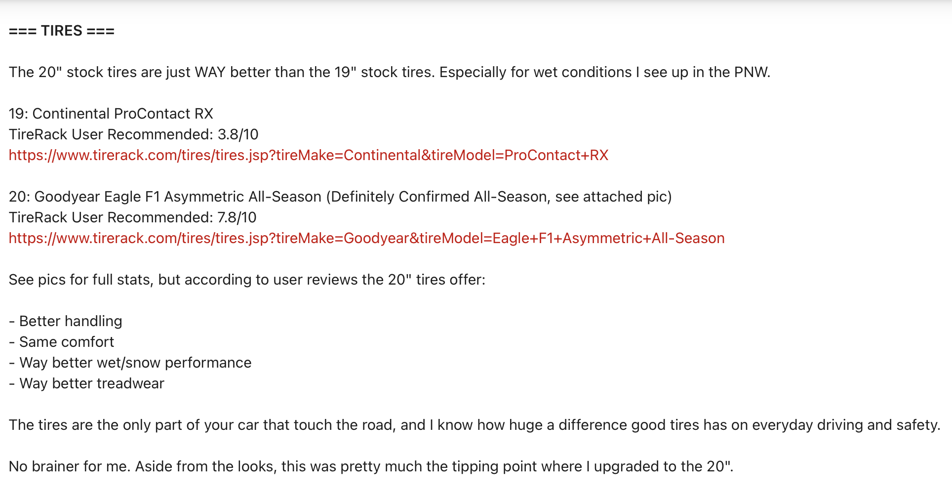 Siparislerini 20’den 19’a dusuren pek cok insan gorunce arastirayim dedim ve ikisi arasindaki farklari burada ecnebiler baya guzel ozetlemisler; Benim icin onemli olan konfordu, konfor bakimindan fark olmadigi, hatta 20 inc olanin normal ve islak yol tutus, kar performansinin vs. daha iyi oldugunu yazdiklarini gorunce, 20 inc ile yola devam https://teslamotorsclub.com/tmc/threads/model-y-19-vs-20-decision-guide.201380/ < Resime gitmek için tıklayın > Bu arada mumkunse daha alim asamasinda ustunden gecilmesi gereken konulari buraya yazip, konuyu dagitip, gereksiz mesajlar okumak zorunda kalmayalim. Basligin adi ustunde, buradaki insanlar hali hazirda ilgili araci almis olan insanlar. Sorulariniz var ise bunun ile alakali diger basliklar hali hazirda mevcut @irresponsible |