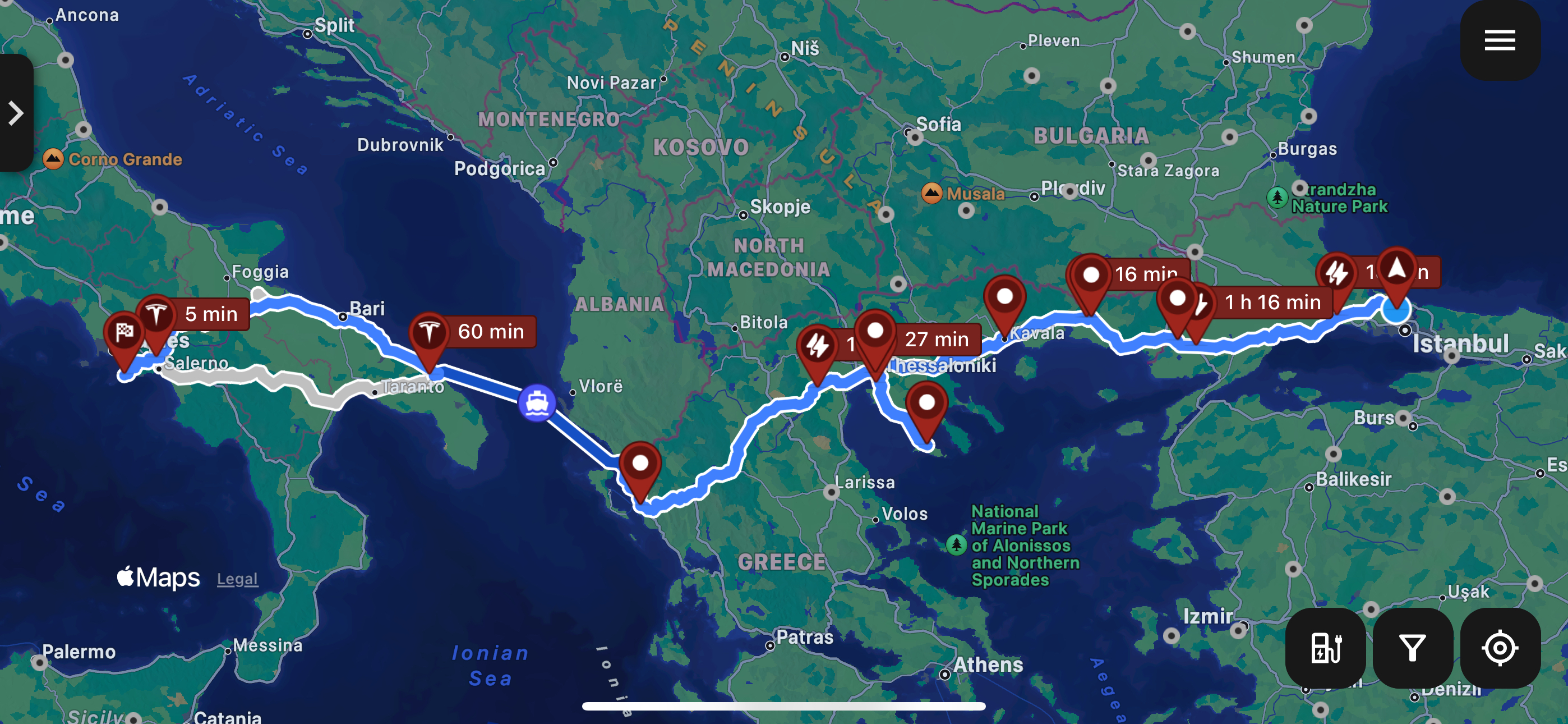 Herkese merhaba, geçen haziran ayında şarj istasyonları daha sınırlı iken İstanbul’dan Marmaris’e gitmiştim. Sizlerle paylaştım, keyifli güzel bir yolculuktu ve çok memnun kalmıştım. Aracım Model Y long range. Bu tatil haftasında ise daha farklı bir yolculuk yaptım. İstanbuldan İtalya Napoli bölgesine gittim. Çok keyifli bir yolculuktu. Farklı şehirlere uğrayarak geze geze gittik ve döndük. Benim için Yunanistan’da nasıl şarj edeceğim, italya’da ne yapacağım soru işareti idi ama hepsi de halloldu. Istanbul-İpsala-kavala-Selanik-halkidiki-Igoumenitsa-bari-Cerignola-napoli-sorento. Igoumenitsa’da Gemiye binerken yolcular ve gemi personeli ilgi gösterdi. Gemideki İtalyan bir personel, Tanrı bizi korusun ya yanarsa dedi (güldük beraber), gidip dizel alsana ne uğraşıyorsun dedi. :) sonra arabanı sevdim dedi, güzel yere park ettirdi. Yunanistan şarj ağı bizimkinin bir hayli gerisinde, 180’lik şarj istasyonu kuzeyde çok çok sınırlı. Ama 60’lıklarda iş görüyor. İtalya’da ise suıpercharger’lar harika, onun haricinde başka pek çok marka da var. Aklımda bir sürü soru vardı yola çıkmadan, ufak tefek konuları hallettik, (internet vs) ve sonunda iyi ki bu araçla yola çıkmışım dedim. < Resime gitmek için tıklayın > |
