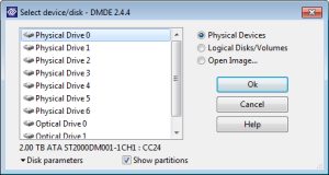 Çıkan pecerede hangi cihazla/diskle çalışmak istediğinizi soracak. Burada kartınız program tarafından görülürse Physical Drive 1 gibi bir şekilde görünür. Kapasitesinden de yola çıkarak kartınızı seçip Ok tıklayın.