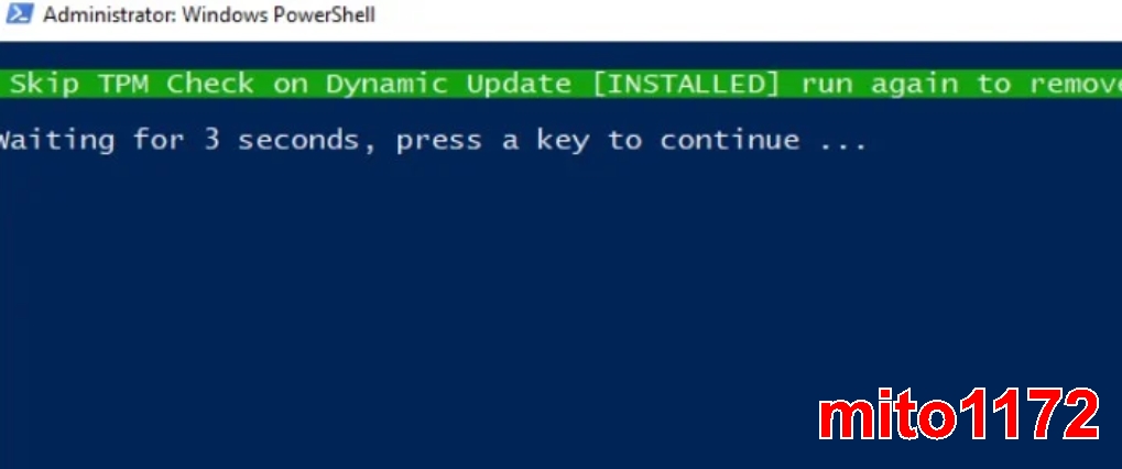 Burada PowerShell’in “Skip TPM Check on Dynamic Update [Installed]” notuyla birlikte açıldığını göreceksiniz. Eğer bu komut dosyasını tekrar çalıştırırsanız, TPM kontrolünün yeniden etkinleşeceğini özellikle belirtelim.< Resime gitmek için tıklayın >