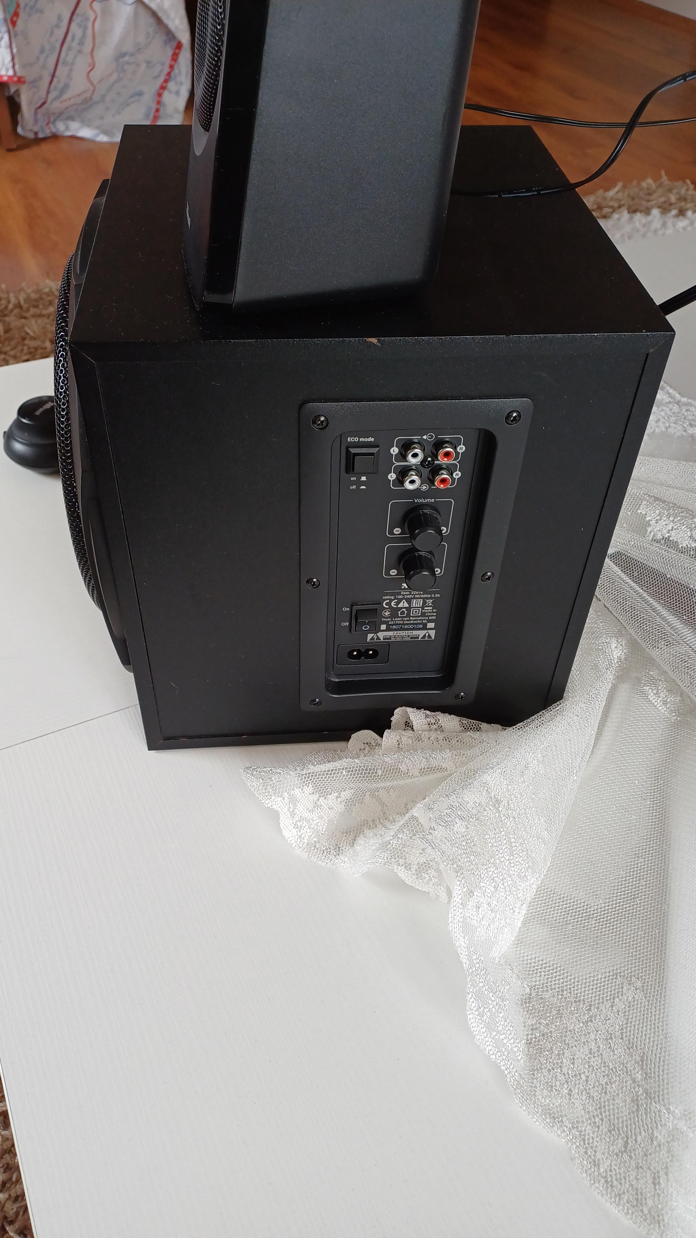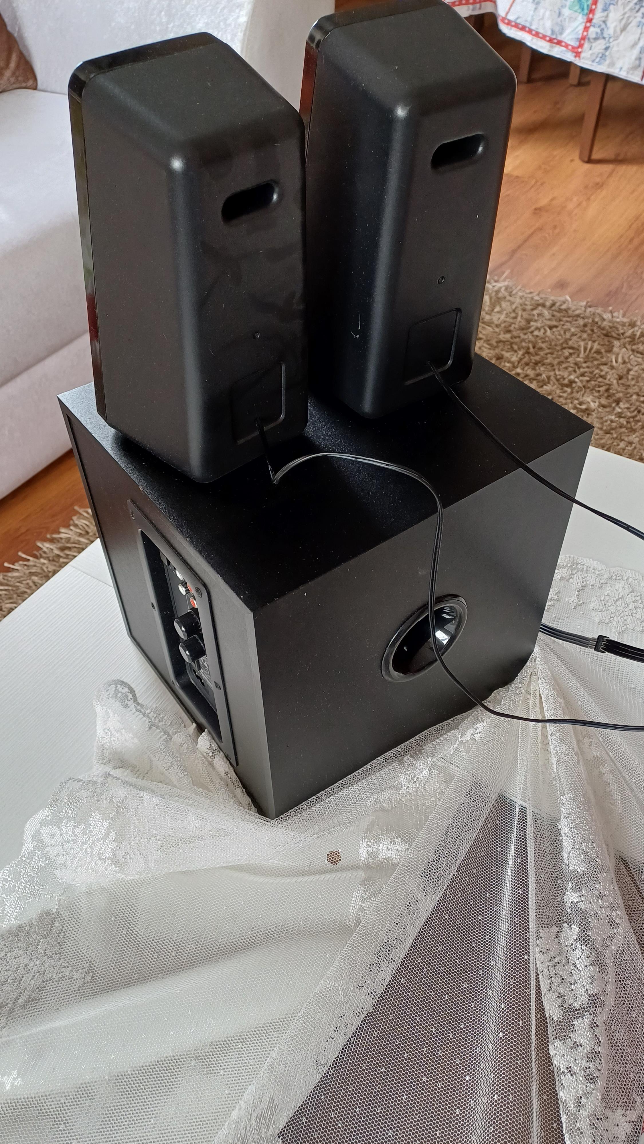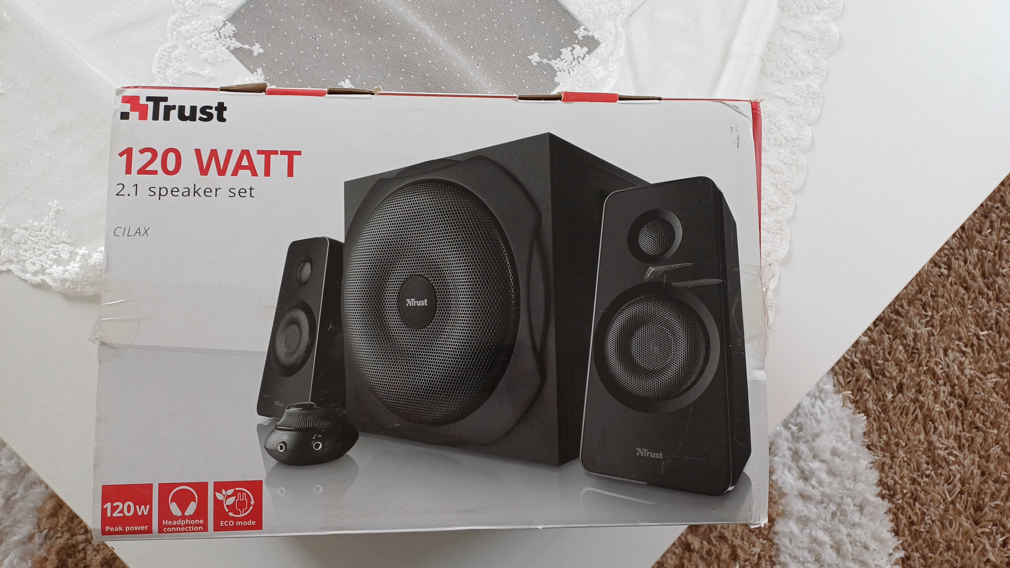 Trust Cilax 2.1 ses sistemi ihtiyaç fazlası olması nedeniyle satılıktır. Subwoofer'ın sağ üst köşesindeki birkaç mm ezik dışında (resimde görebilirsiniz) kozmetik olarak sorunsuzdur. 60 watt nominal, 120 watt tepe gücü vardır. Bass ve mid agirlikli bir sesi vardır. Fiyatı 2000 Türk Lirası olup, Isparta içi elden teslim, diğer illere kargo yapabilirim.