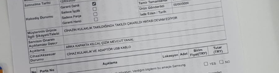 06.09.20 edit: Anakart değişimi olmadı soket tekrar değişti şuan usb sorunu giderilmiş. Kendi çizdikleri arka camı imei yazmayan bir camla değiştirmişler fakat bu seferde kamerayı tozlu pislik içinde bırakmışlar. Bıktım vallahi bıktım artık almayın aldırmayın yazıklar olsun haram zıkkım olsun ya.