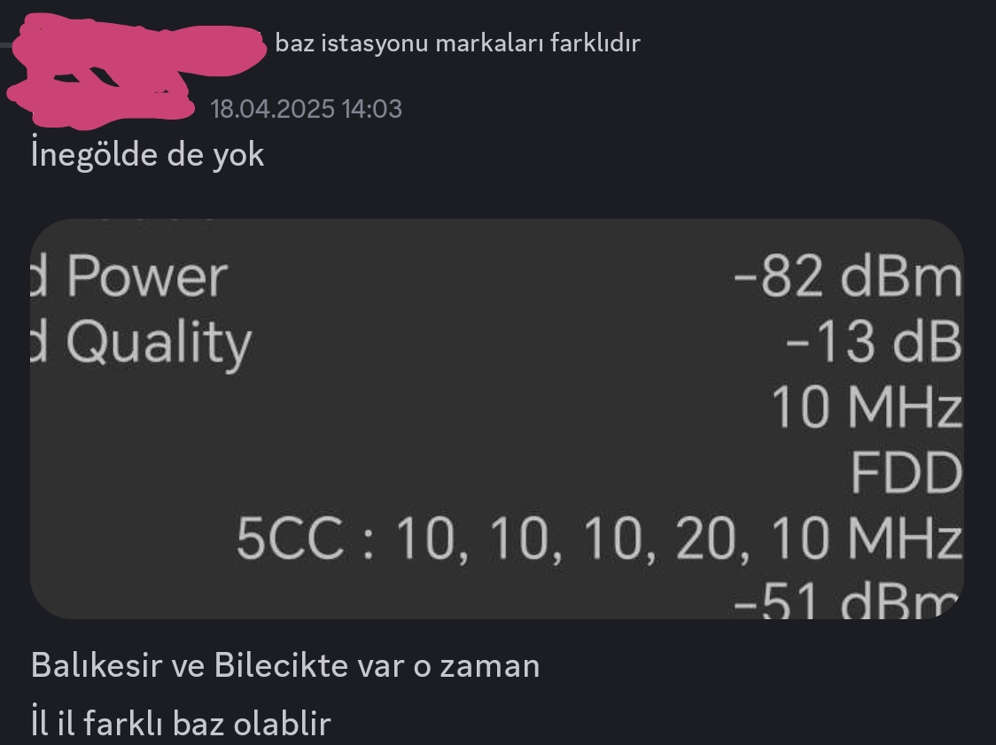 daha sizi geçen hafta etiketledim gösterdim Temmuz ya da Ağustos ayında önce 2100 de 15 MHz geçildi hemen ardından da 1800 tarafı Balıkesir tarafı yıllardır 15 MHz kullanılıyordu . Ankara tarafında Band birleştirme açık olmuyor veri akışı olduğunda birleşip kapanıyor . Bursa da da sabah karşı kapanıyor .Eco mod dedik ona giriyor .Bazı istasyonlar komple kapanıyor .7:30 8 de açılıyor |