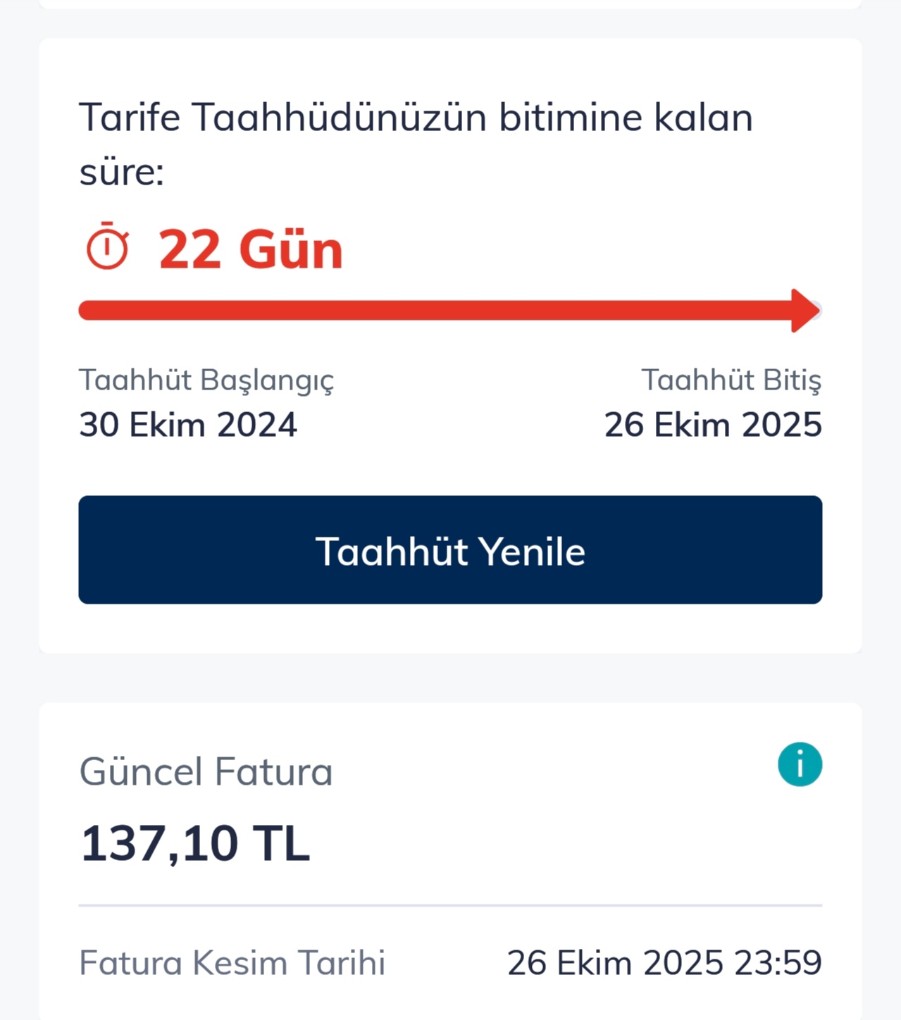| Hocam sizin bilginize güvenerek müsaadenizle bir konu hakkında fikrinizi almak isterim. Şuan kullandığım hat babamın üzerine ve 26 Kasım 2025 23:59 itibariyle Popüler Prime Limitsiz Sosyal adlı tarifemin tahatütü son buluyor. Bu hat üzerinde avantajlı bir teklif gelmemesi sebebiyle ve bende şehir dışında okuduğum için bu hattı kapattırıp kendi üzerime yeni hat alıp (tt 80gb 390tllik paketi düşünüyorum) açtırmayı düşünüyorum. Şimdi zaten öğrenci olduğum için zor yetişebiliyorum o sebeple ben en az zararla bu hattı hangi günde ne yaparak kapatmalıyım? Biraz göz gezdirdiğim kadarıyla son ay cayma bedeli kesiliyormuş alanlar olmuş btk aracılığıyla ancak işimi şansa bırakmak istemiyorum. Lütfen napmam gerektiği hakkında bilginiz dahilinde yönlendirme yapar mısınız? |