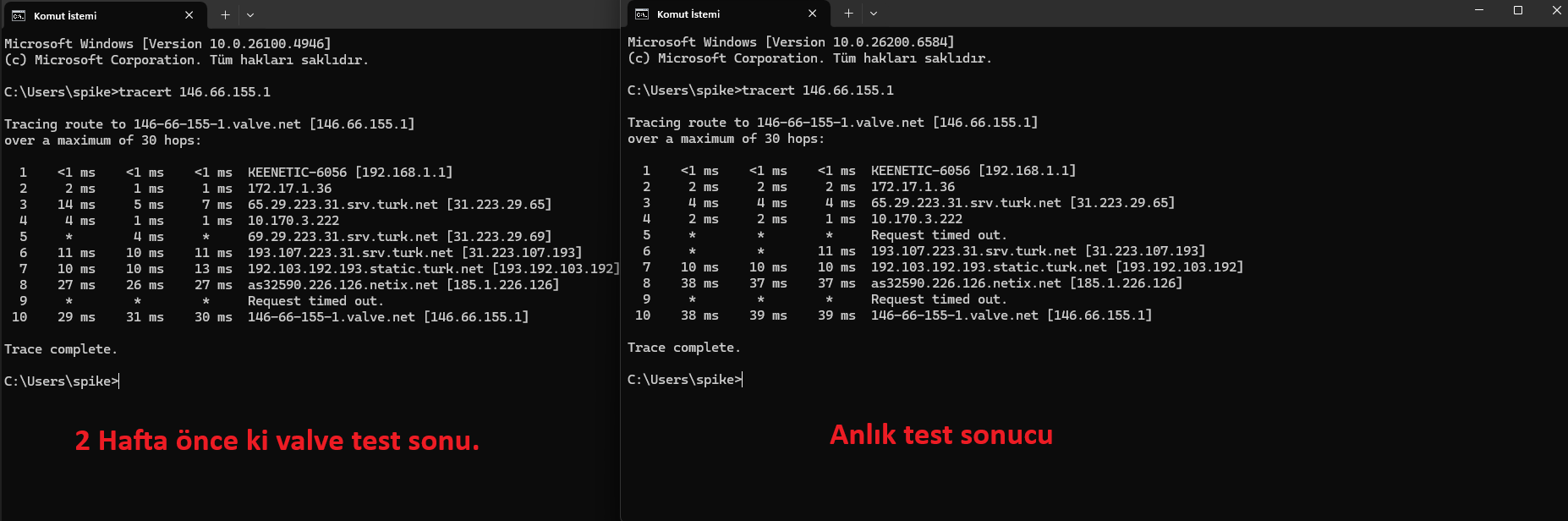 @TurkNetDestek acaba buradaki şikayetleri toplu olarak bir yere (network ekibi vs.) iletiyor musunuz yoksa boşa mı yazıyoruz? son 2-3 hafta da genel deneyim yer yer ciddi kötüleşiyor. özellikle bazı akşamlar katlanılmaz derecelere geliyor bu sıkıntılar. bakın ilk bağlantımın yapıldığı gün (2-3 hafta kadar önce) ki test sonucu ile şuan ki test sonucu arasında 10 ms fark var. < Resime gitmek için tıklayın > bu düşük ms'leri almak varken (ki 2-3 hafta öncesinden bahsediyorum dediğim gibi) daha yüksek ms almak kötü oluyor. bu pingleri verememiş olsanız neyse sesimi çıkartmayacağım. valve tarafını geçtim. geçen sayfada paylaştım. vk gibi siteler zaten çok yavaş açılıyor sıkıtının olduğu saatlerde. lütfen! genel deneyim anlamın da bir sıkıntı olduğunu rapor edin üst birimlere. |