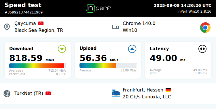 bunlar turknet değil mi ? geçen aydan beri 1000 mbps ile 750 mbps arasında hız alıyorum 100 mbps hiç kullanmadım < Resime gitmek için tıklayın > < Resime gitmek için tıklayın > |