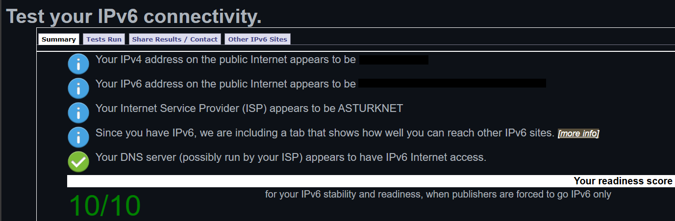 IPv6 sunmaları TurkNet'in takdir ettiğim yönlerinden biri.. Düzeltmeleri iyi olmuş. İhtiyacı olan veya isteyen kullansın, seçeneği olsun. 2 yıl önce abone olduğumda IPv6'yı açtırmıştım, bir süre deneyimleyip ihtiyacım olmadığı için router'dan kapatmıştım. Konuyu görünce denedim, sıkıntı yok çalışıyor. Ama yine kapattım çünkü IPv4'te CGNAT içerisinde olduğum halde bir sıkıntısı yok. < Resime gitmek için tıklayın > < Resime gitmek için tıklayın > |
