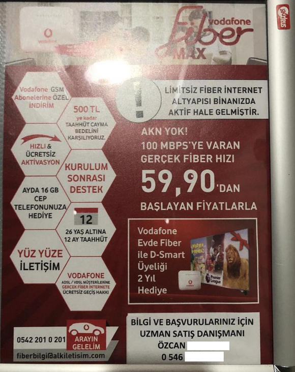 Vodafone eğer bir kere mahsus para almıyorsa o zaman ona geçebilirim, ama işte sözlü olmaz yazılı falan almam lazım Binanın girişinde şöyle bir ilan var buradaki adamı arayıp bilgi alabilirim. < Resime gitmek için tıklayın > |
