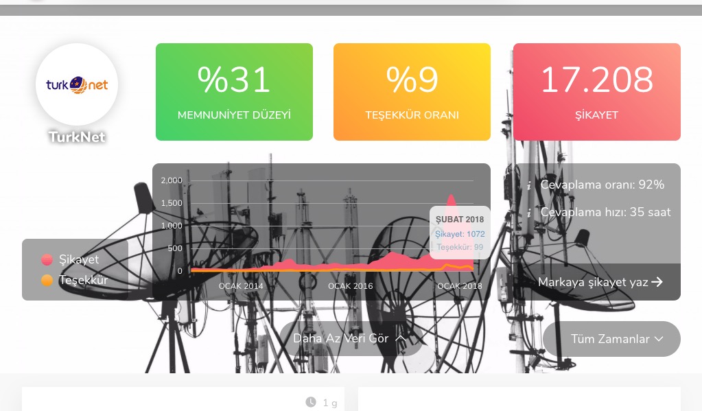 Sen dün yeni çıkmış firmayla turkneti şikayetvar üzerinden kıyaslama yaparsan bu senin olaya hakimiyetini gösteriyor zaten..