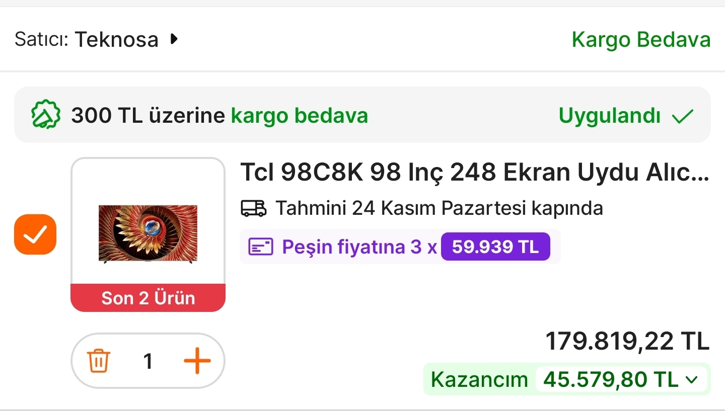 | İyi günlere kullanın. Teslimat konusunda çok dikkatli olun. Benim TV yi muhtemelen kırdılar ve iade ettiler. Hepsijetse riskli olabilir. |