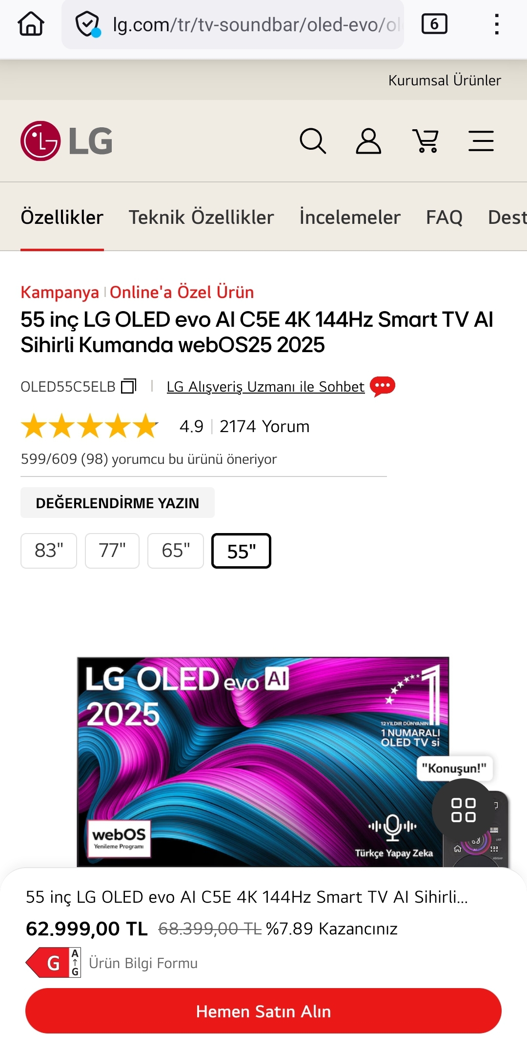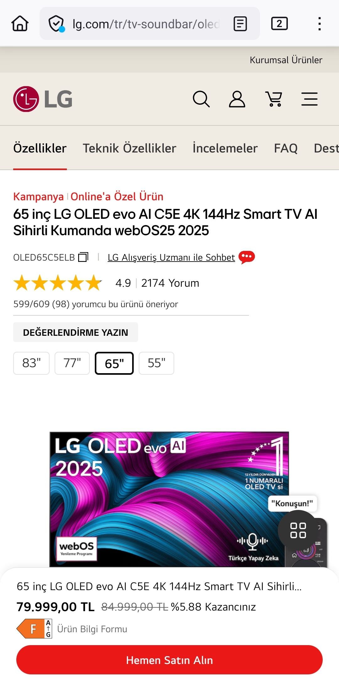 LG sitesinde şu an itibarı ile C5 65" de stok var.