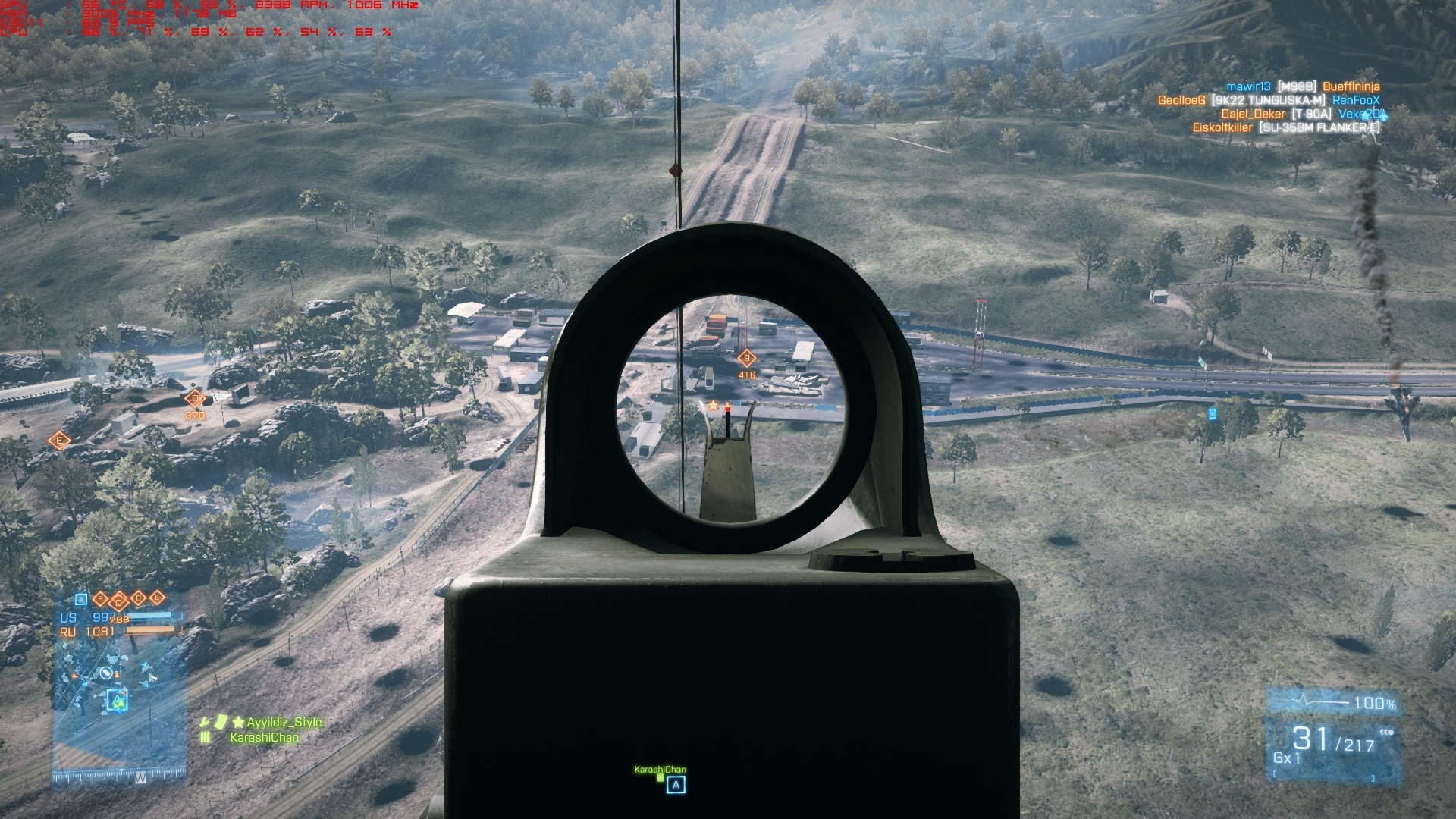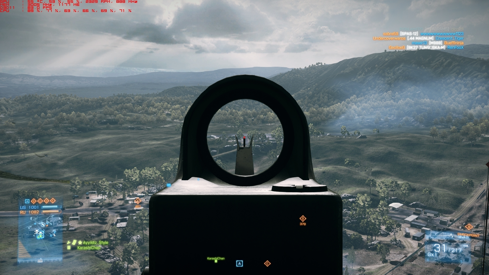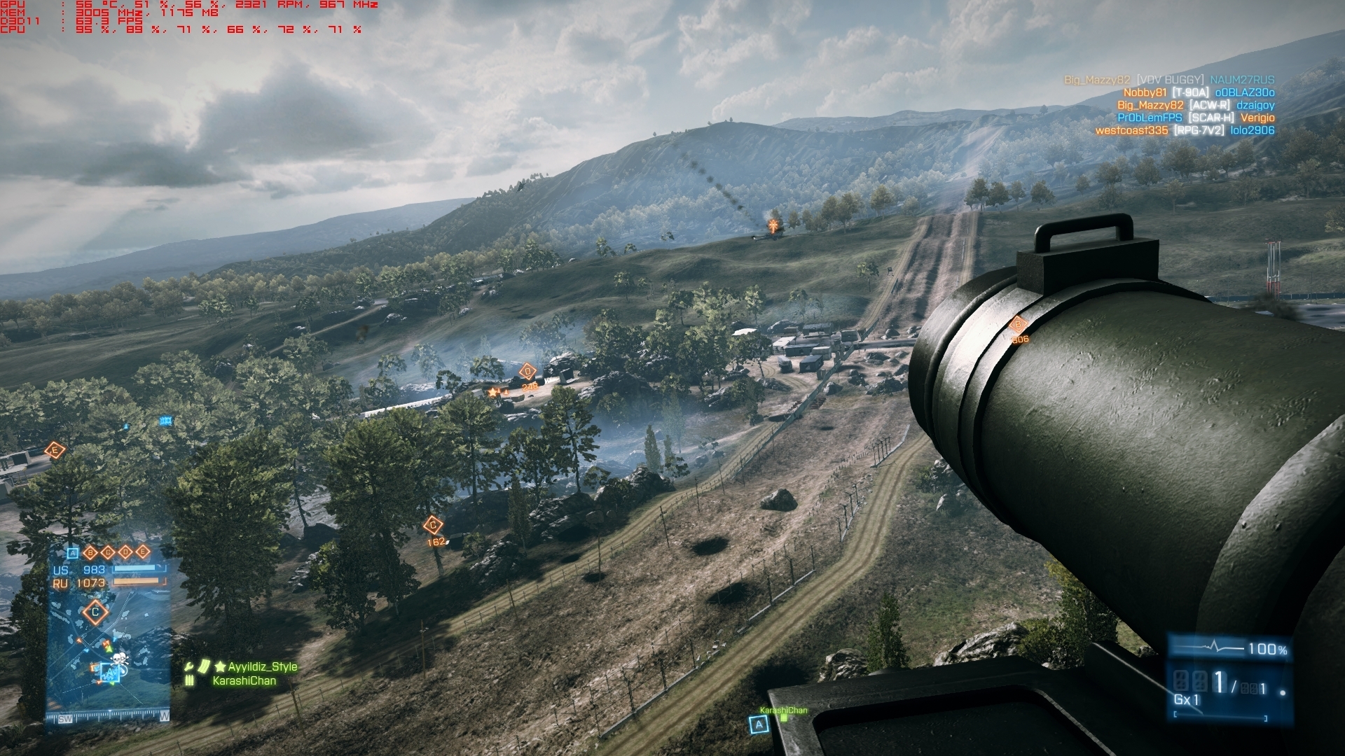 Arkadaşlar test sistemi genel olarak GTX 780 ve HD 6990 gibi yüksek işlem gücü olan iki ağır topa darboğaz oluşturdu, bunu rahatlıkla söyleyebilirim. Çünkü aynı 6990 geçen yıl X-79 bordda Caspian border 64 kişilik sunucuda 2. biosda 100 fps den aşağı görmemiştik ancak bu sistemle 70 fpsi zar zor verdi, özellikle default frekanskardaki rezaleti birazdan kendinizde göreceksiniz.Bence böyle eski sistemlerde bunun gibi kartları ancak hızaşırtmadan anlayan enthusiast seviyesinde kullanıcılar kullanmalı.Bende sisteme öyle hatırı sayılır miktarlarda OC uygulamadım.Zaten DH ahalisi siz arkadaşlar haaa bak bu frekansda bu değerleri veriyorsa şu frekansdada üç aşağı beş yukarı bu fps i verir diyebilecek bilgi birikimine sahipsiniz eminim...