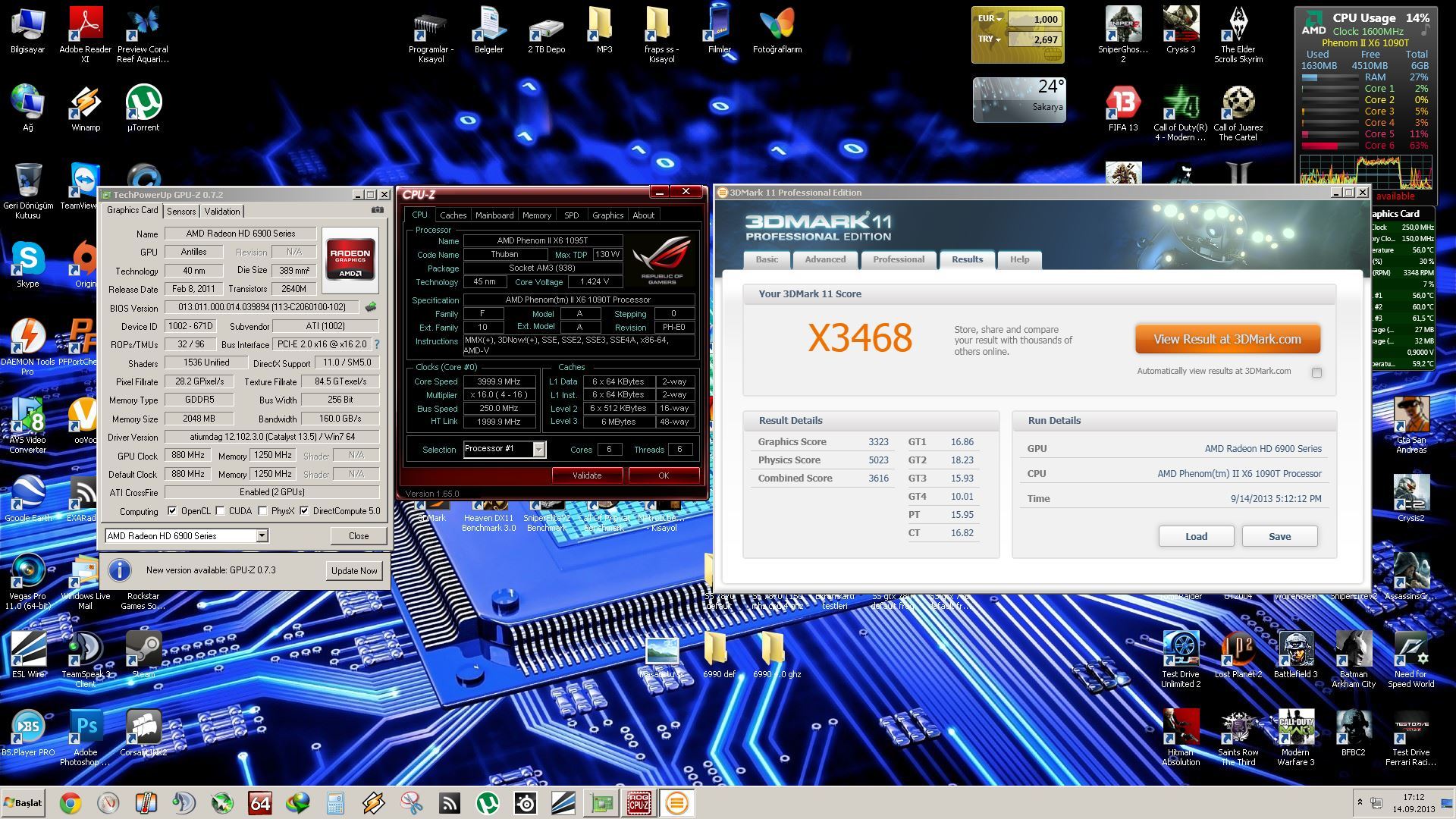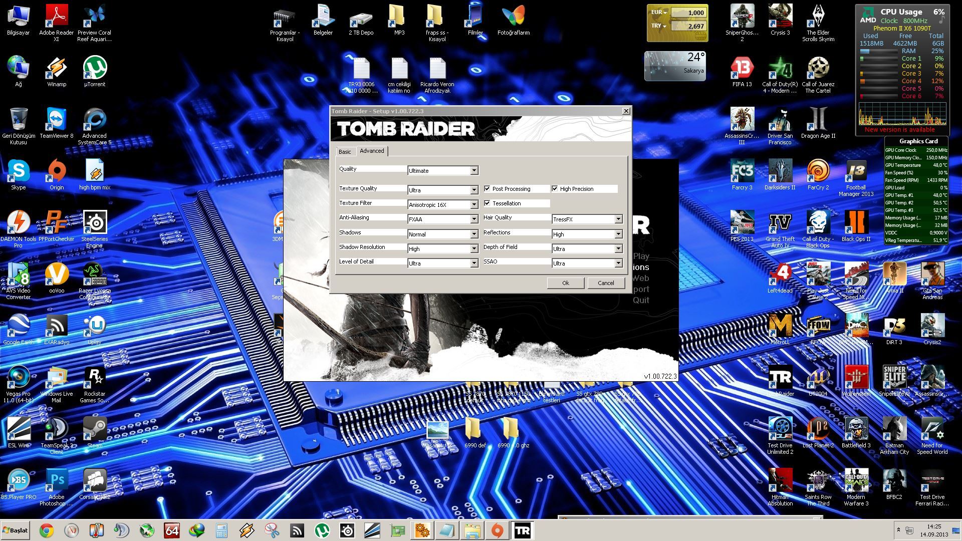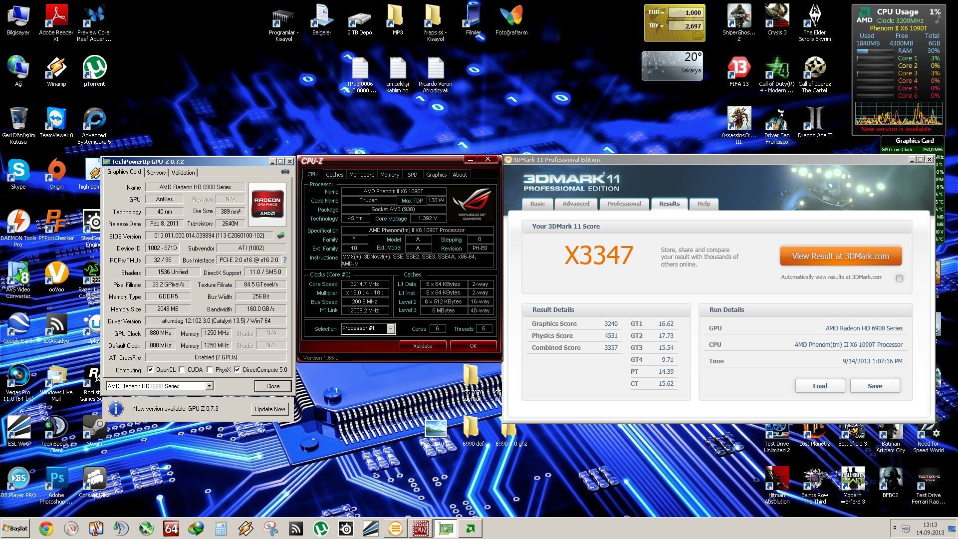 -Ekran kartları: Sapphire HD 6990 4 Gb GDDR5 bios 2 @ 880 Mhz-Zotac Geforce GTX 780 @ Stock-Sapphire Ghz Edt. HD 7870 FLEX @ Stock - @ 1100 Mhz Gpu & 1250 Mhz Memory @ Stock Voltage
