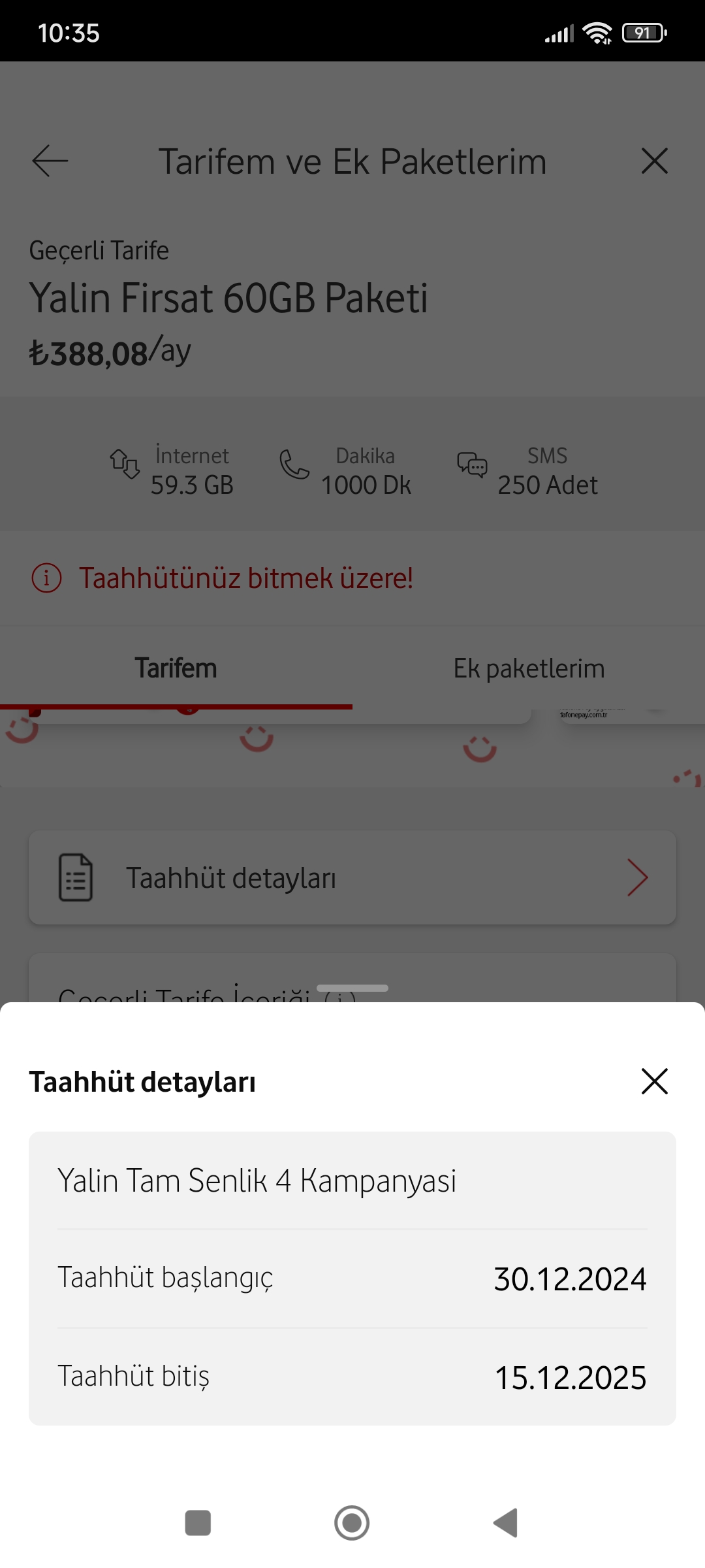 Şimdi cayma bedeli gözükmüyor tarih gözüküyor sadece bende mi gözükmüyor diye başka Vodafone'li arkadaşın telefondan da baktım onda da tutar rakam yazmıyor.