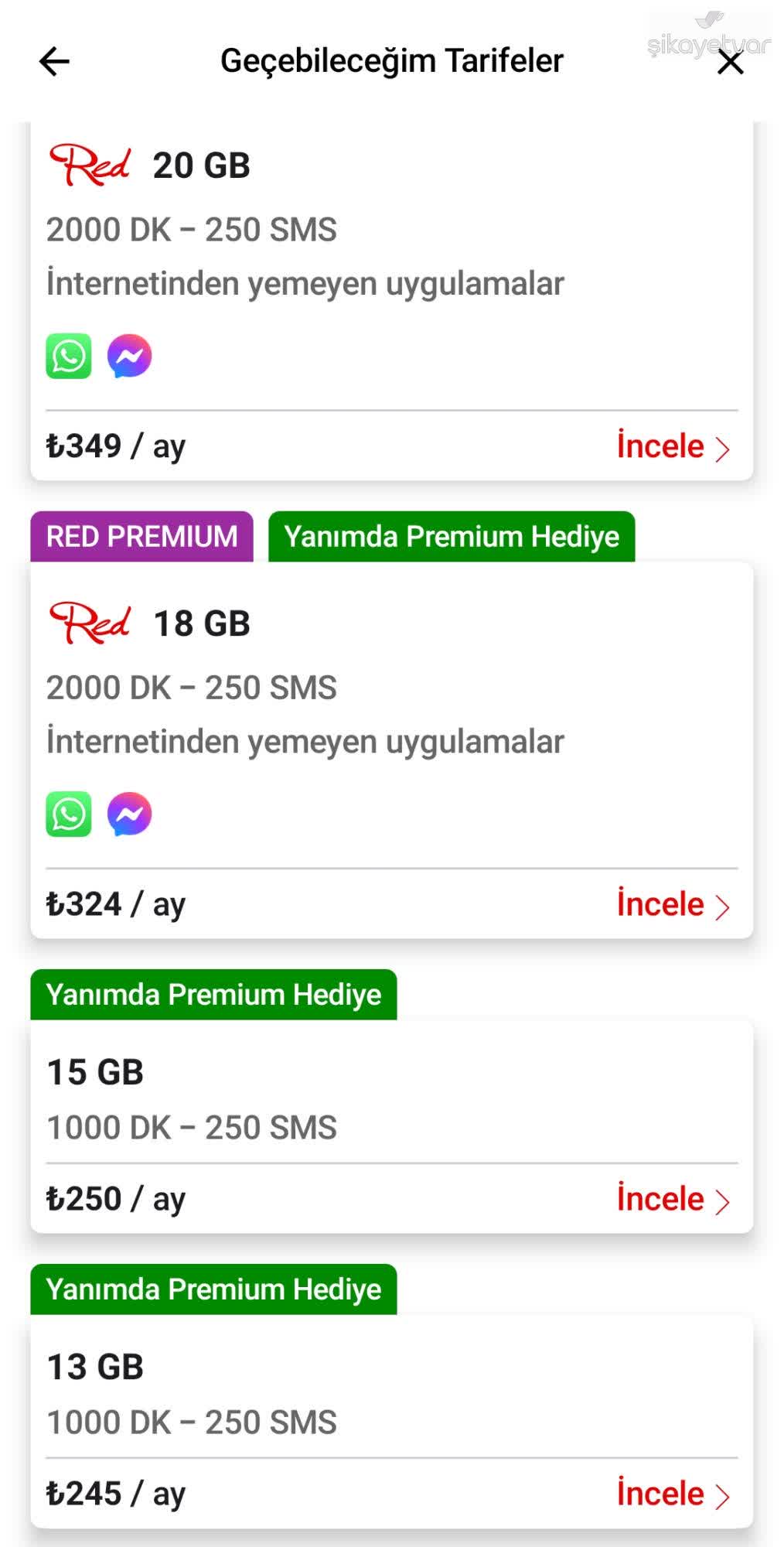 Şikayet varın güncel sunduğu tarife ücretlerini paylaşıyorum Vergi hariç Uyumlu 1 gb 1000 dk 250 SMS 140 TL Uyumlu 4 gb 1000 dk 250 SMS 128 TL Uyumlu 10 gb 1000 DK 250 SMS 185 TL Uyumlu 15 gb 1000 275 TL 18 gb 2000 dk 250 SMS 275 TL 20 gb 2000 dk 250 SMS 299 TL 30 gb 375 TL 40 gb 419 TL |