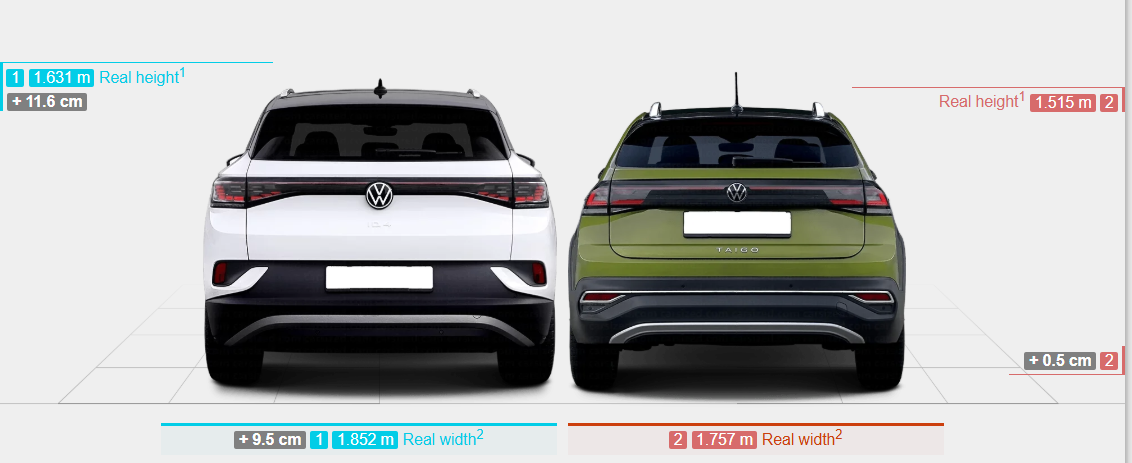 Taigo ve Id4 boyut olarak farklı araçlar ancak trafikte 1-2 kez gördüğüm bu aracı Taigo'ya benzetmek gayet doğal al arkadan görünyü. Bulut dinazor ne alaka.