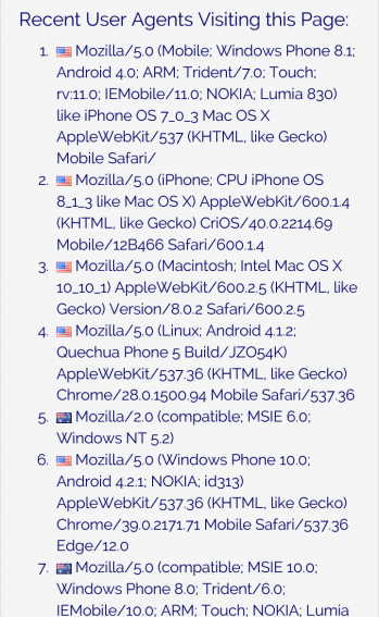 Bu liste tarayıcı kimliği sitelerin sizin cihazınızı nasıl tanımlayacağı işe ilgili. |