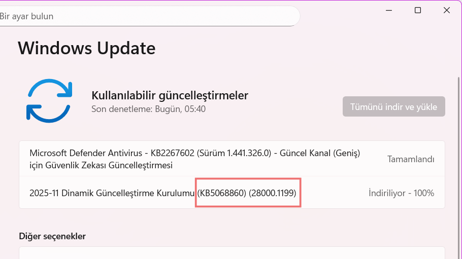 26H1 e 2. güncelleme de gelmiş yeni fark ettim :