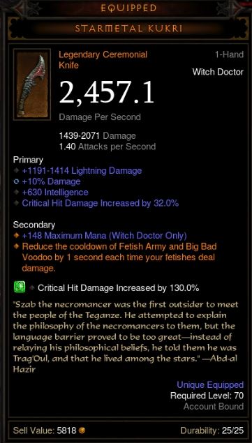 Benim sorduğum pasiflerden gelen fetishler çok çabuk ölüyor mesela death maiden veya mallet lord gibi yaratıklarda ortada fetish kalmıyor.Skılldeki kullanmak içinde kukri lazım yada zuni set onlarda düşmüyor bir türlü :/