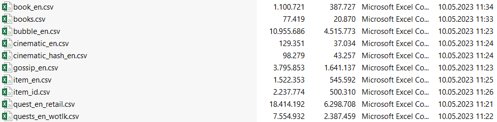 1.sorunuzun cevabı: Bu sistem polonyalı bir ekibe ayit bir sistem ( Classic sürüm desteği şuan için vermiyorlar malesef ) o yüzden ilk görevden ileri ve son görevden geriye giden çevirmenler var retail den bahsediyorum. 2.sorunuzun cevabı: birkaç paket tamamlandı ama sistem biraz karışık tam paket adı veremiyorum eksiği olabilir tabiki çünkü görevler,konuşmalar,sinematikler tüm altyapı dilleri elimizde mevcut değil bunları toplayan addonları kullanan oyuncular mevcut bu şekilde ing versionuna ulaşıp türkçe çeviri yapabiliyoruz. şuan görev için toplanan ve çevrilen görev sayısı - base EN: 31421 - base TR: 4059 Yakında mankina çeviri ile bunu tamamlıycaz bize ise hataları sorunları düzeltmek kalacak olmaz ise normal çevirmeye devam edeceğiz. NPC Dialog: - base EN: 25085 - base TR: 25085 Baloncuk konuşmalar: - base EN: 98505 - base TR: 98505 Sinematikler: - base EN: 2413 - base TR: 2413 Bu verdiğim sayılar base EN Yani şuan için tesbit edilen sayılardır sürekli artmaktadır. base TR ise dilimize çevrilen sayıdır. CurseForge üzerinden WOWTR olarak aratıp 3 addonuda deneyebilirsiniz. |