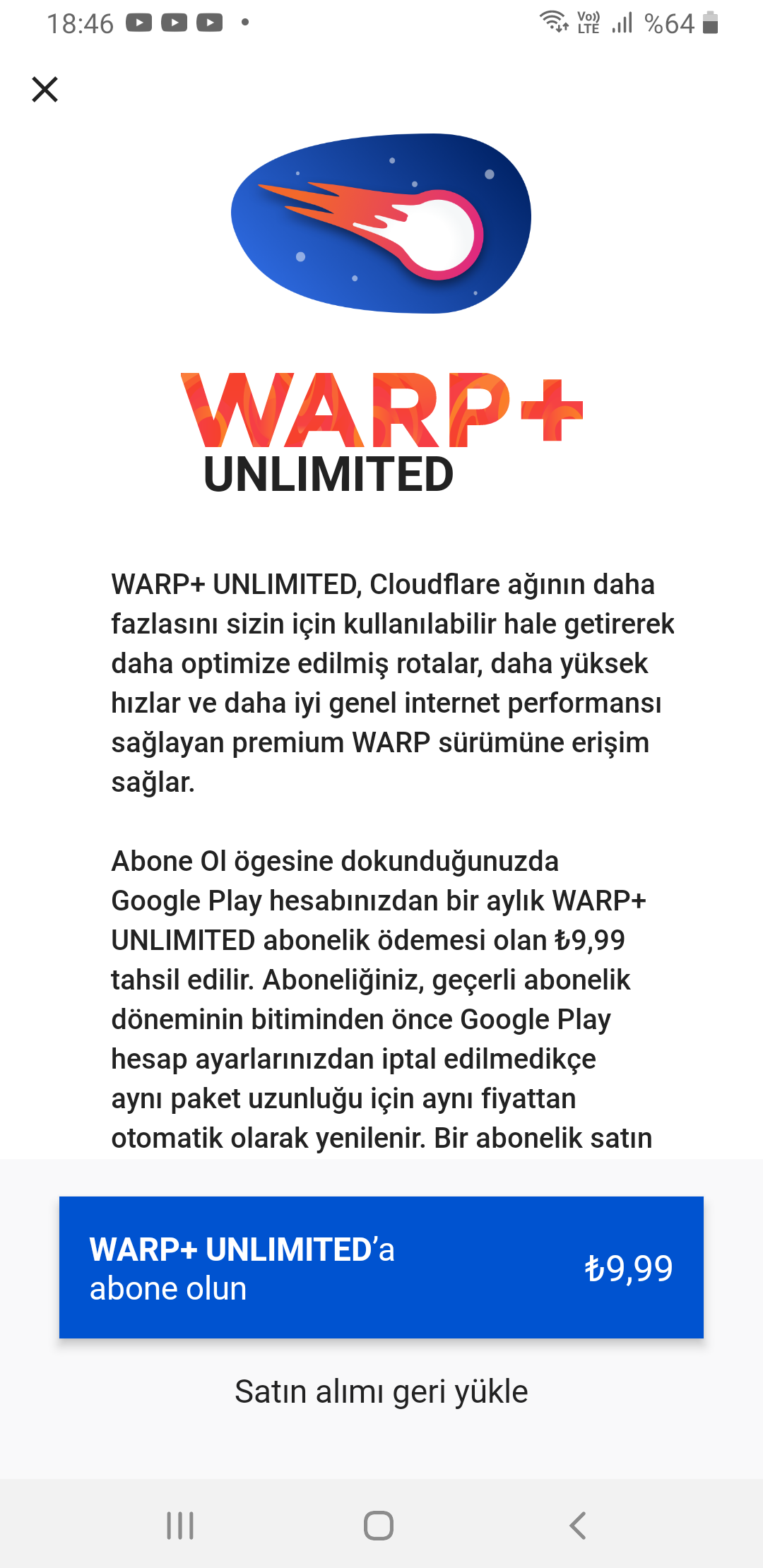 şimdi denettim arkadaşa, warp ile de düzeldiğini söyledi hocam. çok teşekkürler. warp+ ile ne olur ne fark yaratır? bazı yerlerde warp da 1gb sınır var yazıyor ama kendi sitesinde ücretsiz diyor. warp+ sanırım başka bir alogaritma ile daha hızlı aksiyon sunuyormuş. ben https dns proxy de cloudflare, lan da da dns yi 1.1.1.1 yapmıştım. ondan ayrı olarak sanırım bu tam vpn olmasa da vpn'msi bir tünel. warp'ı openwrt ile kolay şekilde kullanabiliyor muyuz? kendi eklentisi var mı luci arayüzü için? yoksa wireguard mı yapılandırmak lazım illa? satın alma sayfası da bulamadım. onu da aratttım, cep uygulamasından alınıyormuş. fiyatı nedir göremedim bu yüzden.