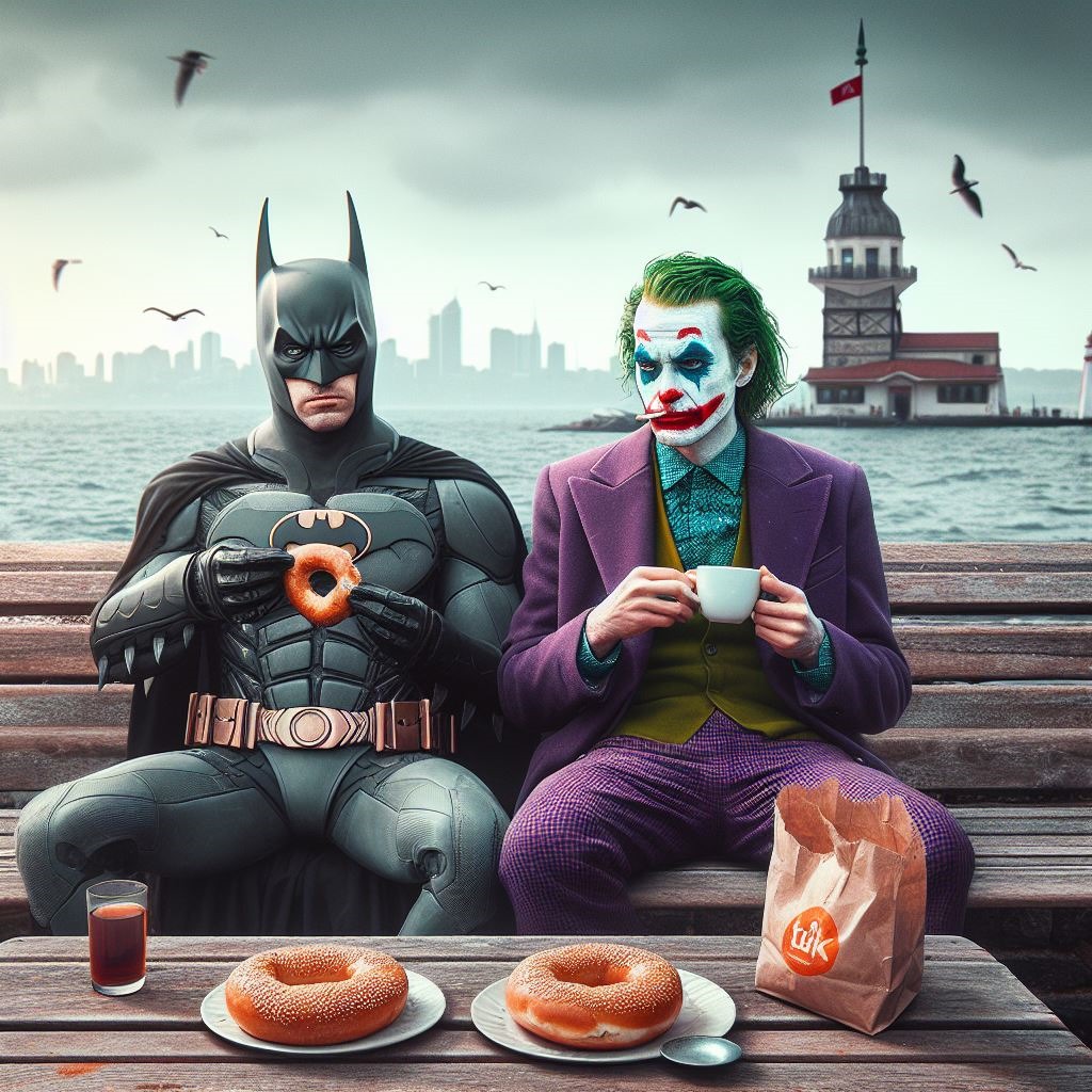 | Batman ile jokere simit yedirmek istediniz sanırım ama donut verdi eline değil mi :) güzel olmuşlar gerçekten |