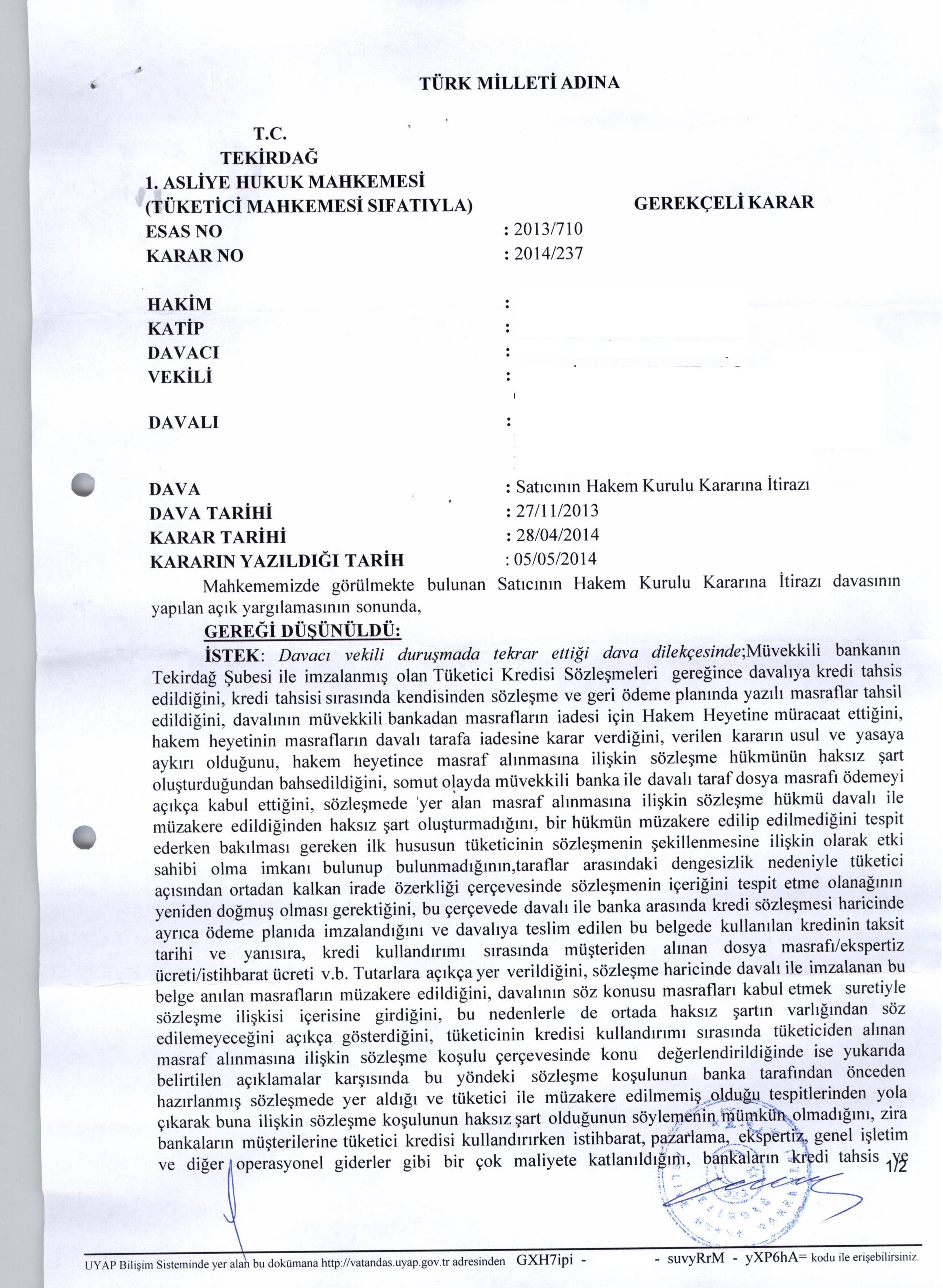 Herkese merhaba, 20013 Haziran ayında Ankara Mamak Kaymakamlığında ki Tüketici Hakem Heyetine yapmış olduğum ipotek fek komisyon masrafı davamın sonucunu bugün itibariyle öğrendim. Tabiki davayı kazandım ve 250 TL' şuan cepte. Davalı Akbank Bahçelievler şubesi. Bugün arayıp durumu bildireceğim şubeye. Umarım bana kıllık çıkarmazlar. Ödemezlerse haciz hakkım var. Bu ipotek fek komisyonu olayını ben yazın buradan öğrenmiştim. Hemen davamı açtım. Sadece bir 10 dk. mı ayırdım Kaymakamlıkta hepsi o. :) Siz siz olun bu bankaları boş bırakmayın. :) umarım buradaki dava açan herkes mutlu sona ulaşır. :) |