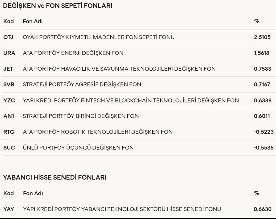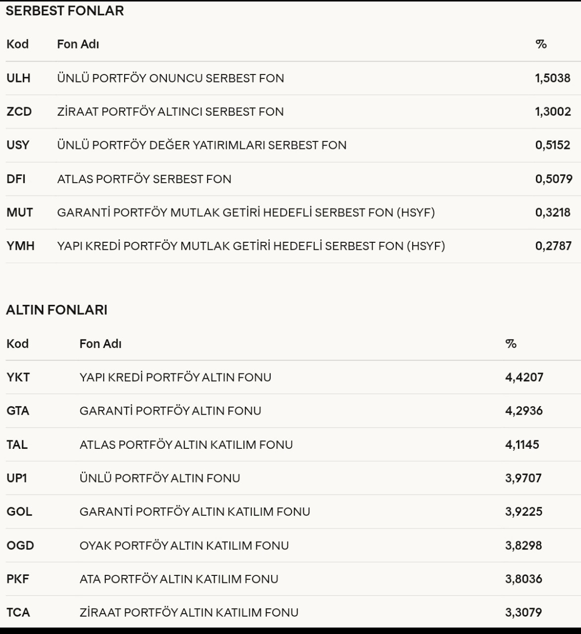 Bugun biraz fazla ilave yaptim fon adedi 15 i gecti