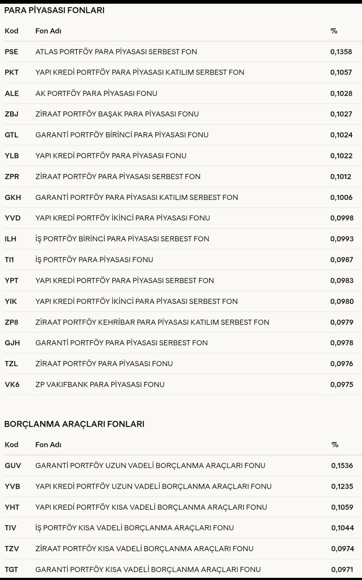 Bir de buna bakin, gayet guzel bir platform fonlar icin.