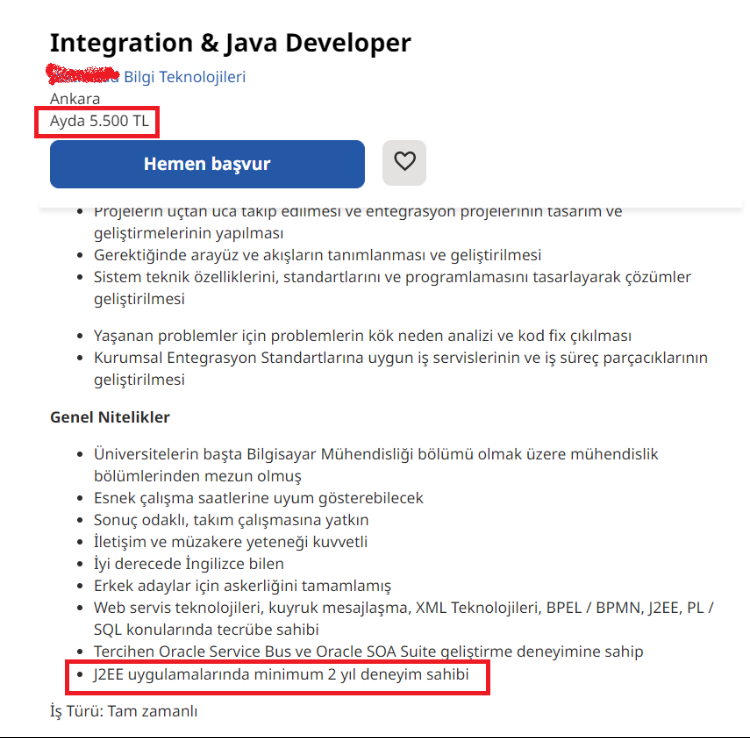 2 yıl tecrübeli machine learning engineer’ın 3 bin dolar aldığını gördüm.