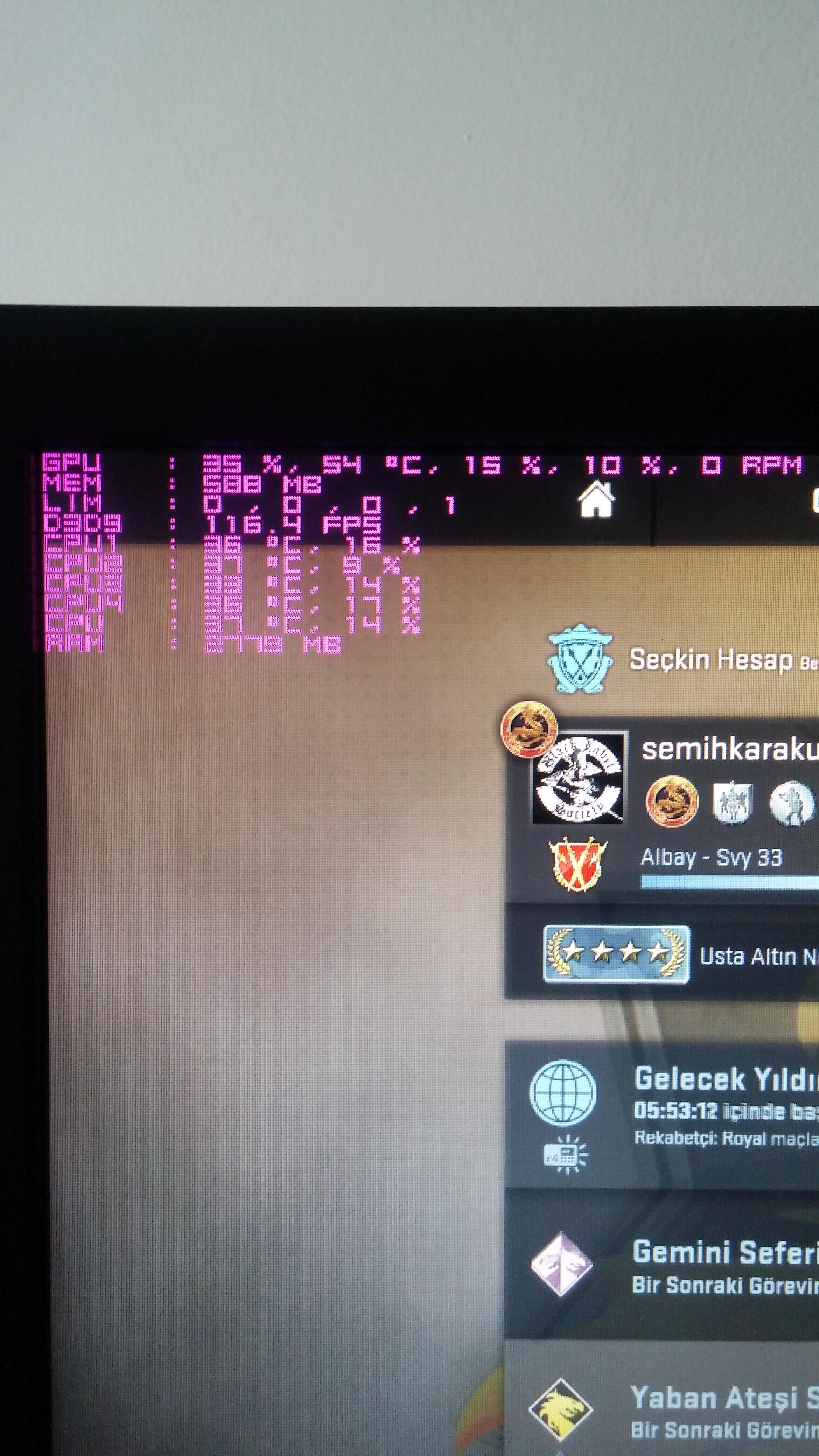 Herkese selamlar. Sistemime ikinci bir monitörü ekledim. Normalde CS:GO oynarken arka planda sadece Spotify açık olur ve oyunu bilgisayarım hiç kasmadan ve çok da fazla ısınmadan oynarım. Ama ikinci monitörü ekledim bu gün ve oyuna girdim, diğer monitörde de Spotify açıktı ve bilgisayarım çok ısındı. Hatta burnuma ısınmış plastik kablo kokuları gelmeye başlayınca epey bir tırstım. Daha sonra ikinci monitörü çıkartıp tekrar oyun oynadım. Sıcaklık değerleri yine aynı çıktı. Sebebi nedir ve nasıl çözerim? Sistem Özelliklerim; i5 6500 işlemci Asus H170M Plus anakart Asus GTX 970 Strix OC ekran kartı Corsair 2400 MHz 8 GB RAM OCZ Trion 100 120 GB SSD Seagate 1 TB 7200 RPM HDD Kasa dahilinde gelen CoolerMaster 600W PSU (Sistemim de dahil olmak üzere Spotify ve CS:GO, SSD'ye kurulu.) Tüm programlarım ve yazılımım orijinal ve tüm driver'lerım güncel. Bilgisayarım 5 aylık. İki tane de kasa fanım var. Birisini hava girişi birisini hava çıkışı için kullanıyorum. Oyuna girmeden önce; < Resime gitmek için tıklayın > Arka planda sadece sistem uygulamaları ve spotify açıkken 25-30 dakikalık bir oyundan sonra; < Resime gitmek için tıklayın >