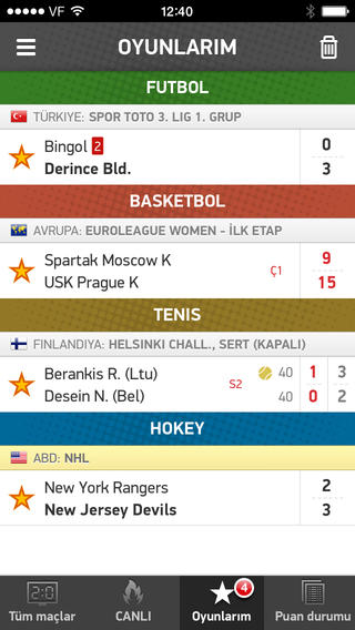-Tenis ve basketbol gibi spor dallarında maçı puan puan takip edebilme imkanı