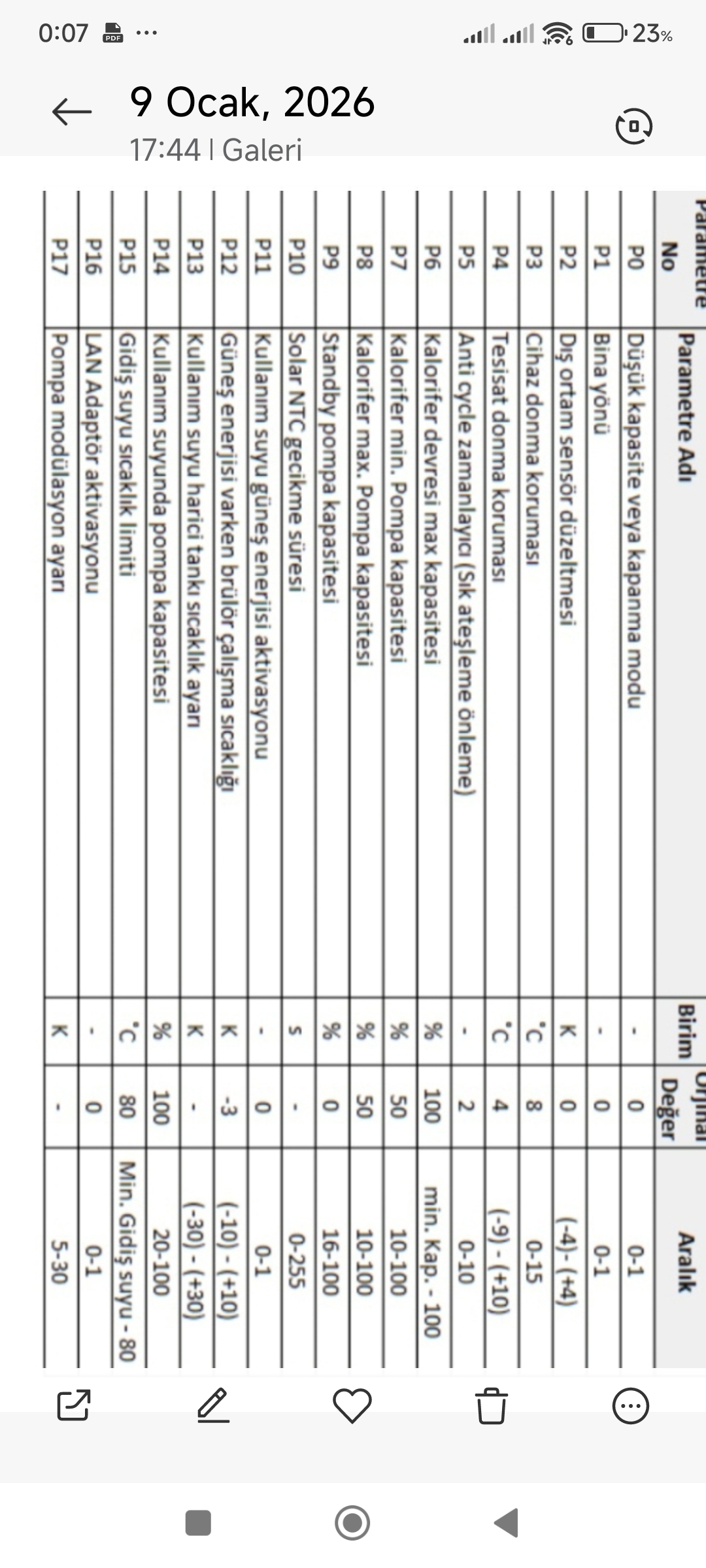 | Reis sen Daikin 24kw ndj kombiden anliyon benim ev 110 M2 net kullanım alanı ara kat zeminden ısıtma güney batı cephe toplam 7 kollektör var tahmini 450 M boru döşeli bu kombinin dönüş suyunun A01 dönüş suyunun 27. 28 dereleerde sabit kalması için ve en iyi yoguşmayi yapması için dur kalk yapmadan en düşük modulasyonda calsimasi için P menüsü ayarları tek tek ne olmalıdır. Dhs ve ot kullanmıyorum. < Resime gitmek için tıklayın > < Resime gitmek için tıklayın > |