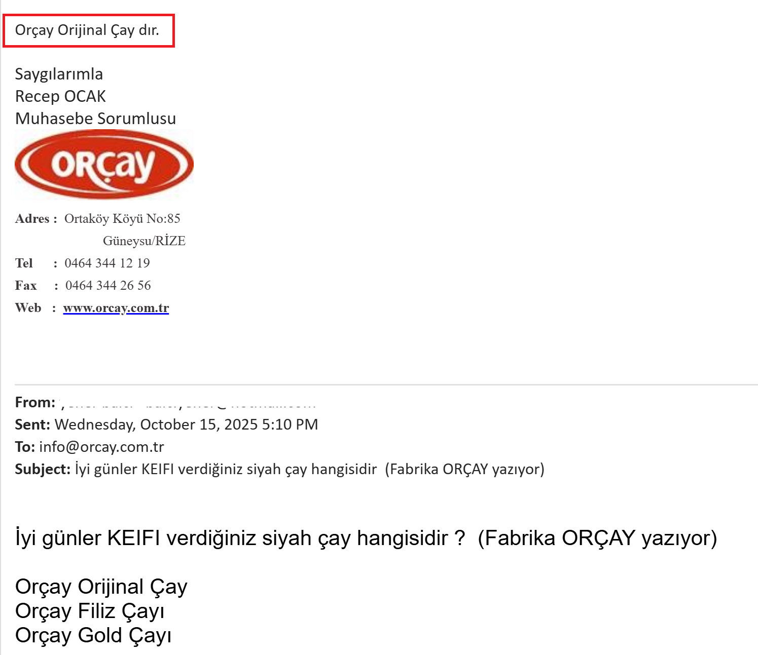 MAYIS ÇAYI (İLK HASAT) ----> Güneysu/RİZE < Resime gitmek için tıklayın > < Resime gitmek için tıklayın > https://eticaret.orcay.com.tr/urun/40.yilimizaozel-28.html Daha önce KEİFİ ÇAY içmiştim Firmadan bu onay gelince direkt ORÇAY ORİJİNAL ÇAYI sipariş ettim < Resime gitmek için tıklayın > < Resime gitmek için tıklayın > |
